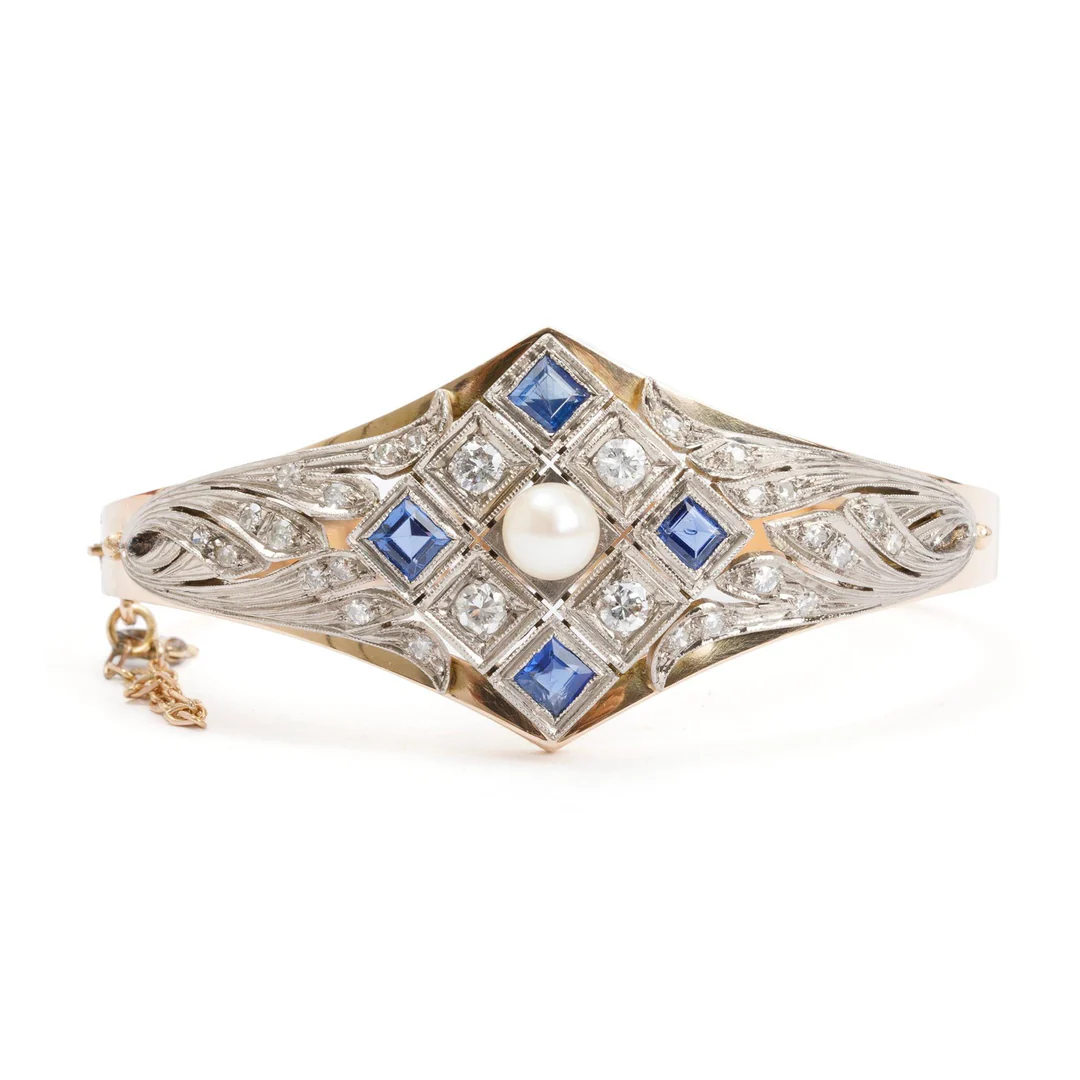 14k Gold Pearl, Sapphire & Diamond Bracelet