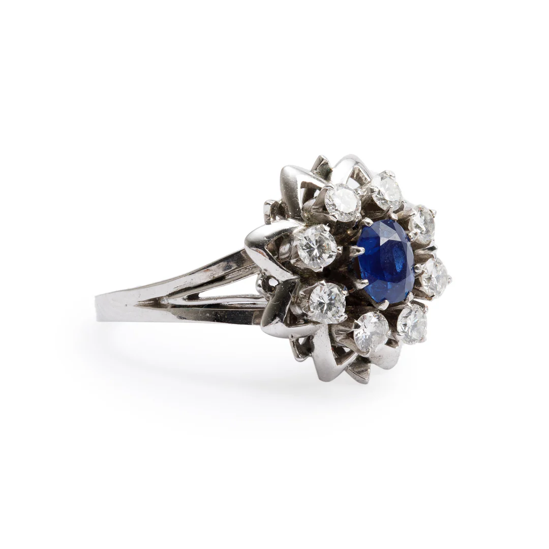 Be the first to review “14k White Gold Blue Sapphire & Diamond Cocktail Ring, Size 7.75”
