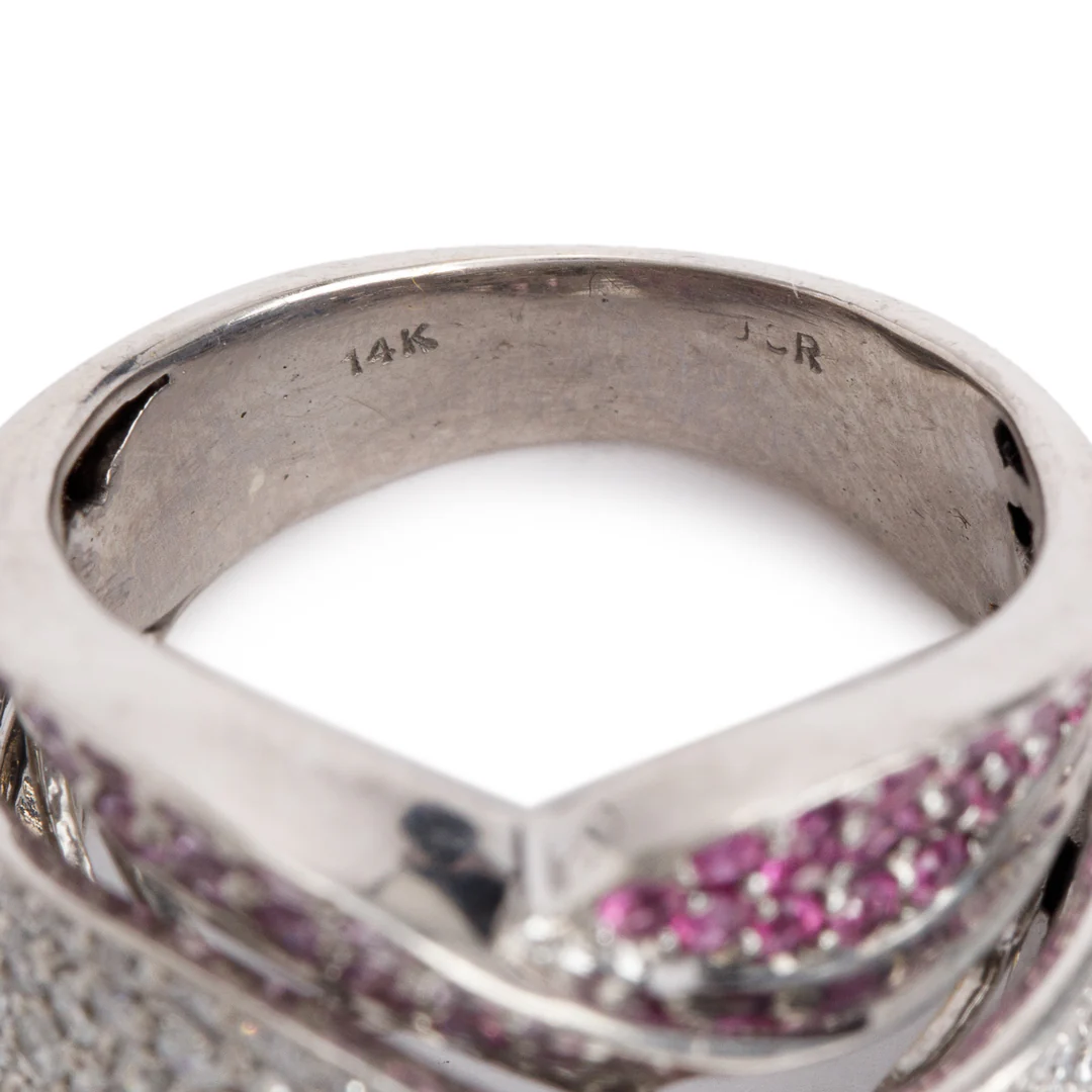 14k White Gold Pink Sapphire & Diamond Cocktail Ring, Size 7.5