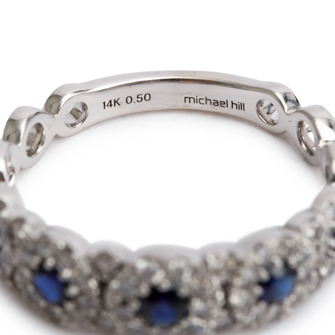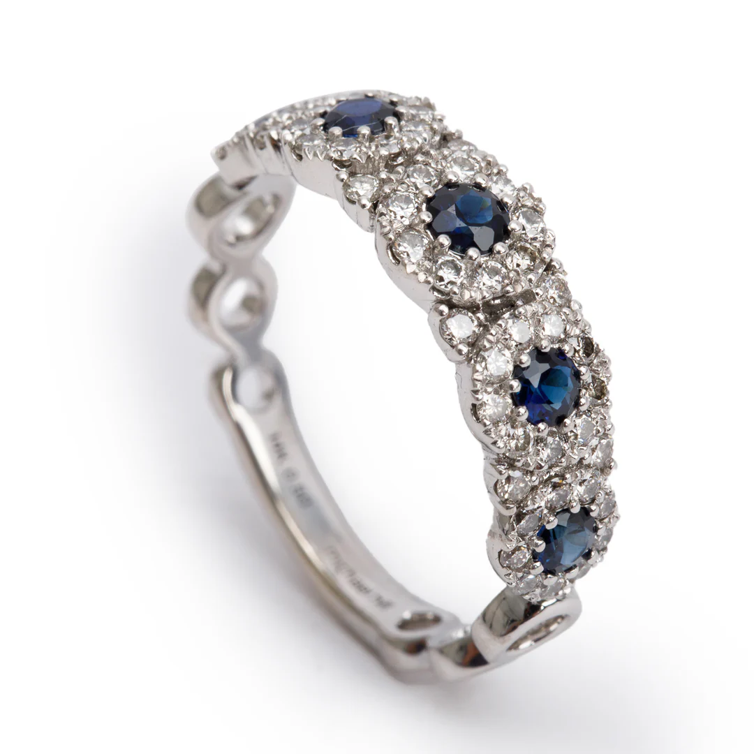 14k White Gold Sapphire and Diamond Band Ring, Size 7.25