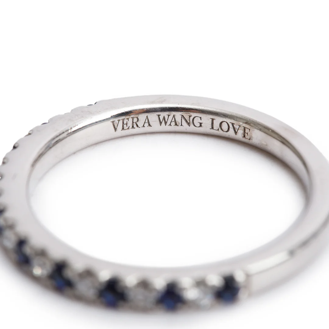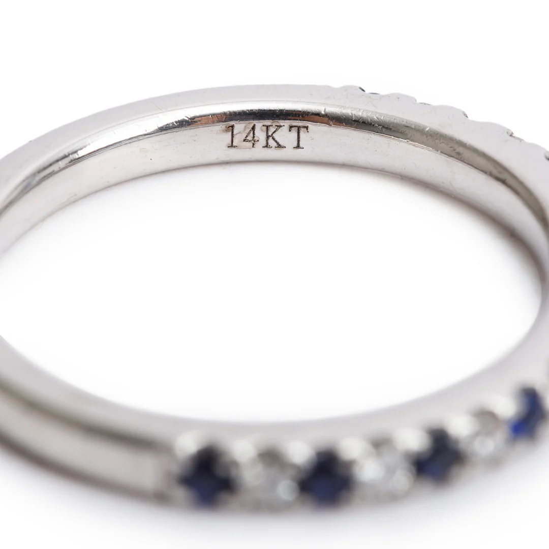 14k White Gold Sapphire & Diamond Band Ring, Size 6.5