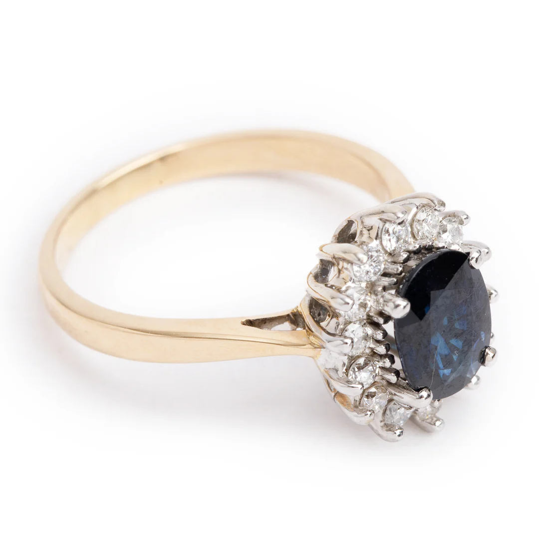 14k Yellow and White Gold Sapphire and Diamond Ring, Size 7.25