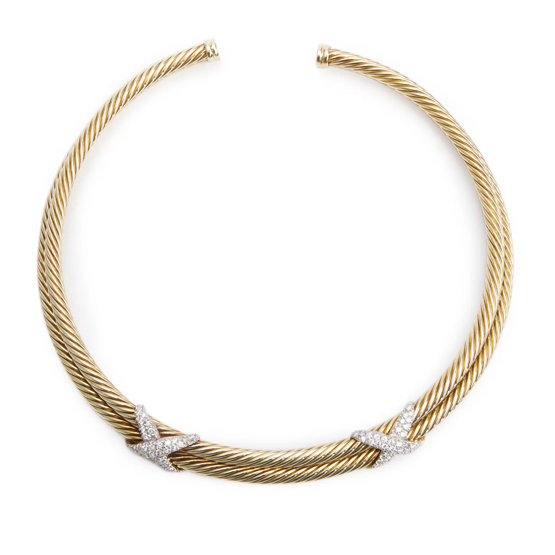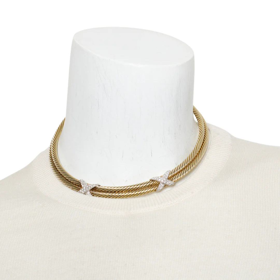 14k Yellow Gold Diamond Cable X Choker Necklace