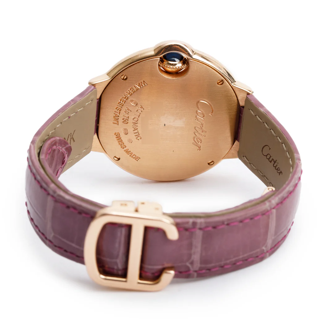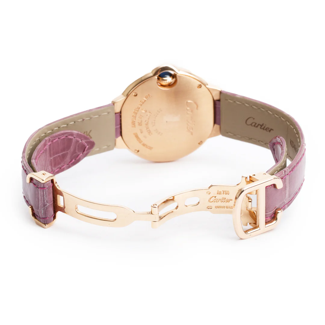 18k Rose Gold Diamond Bezel Ballon Bleu de 33 MM Automatic Watch Silver Dial 3282