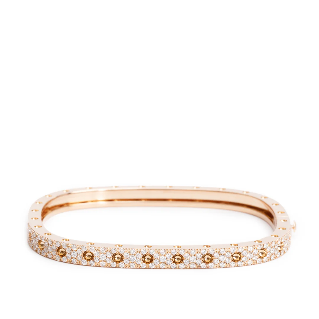18k Rose Gold Pave Diamond Pois Moi Single-Row Square Bangle Bracelet