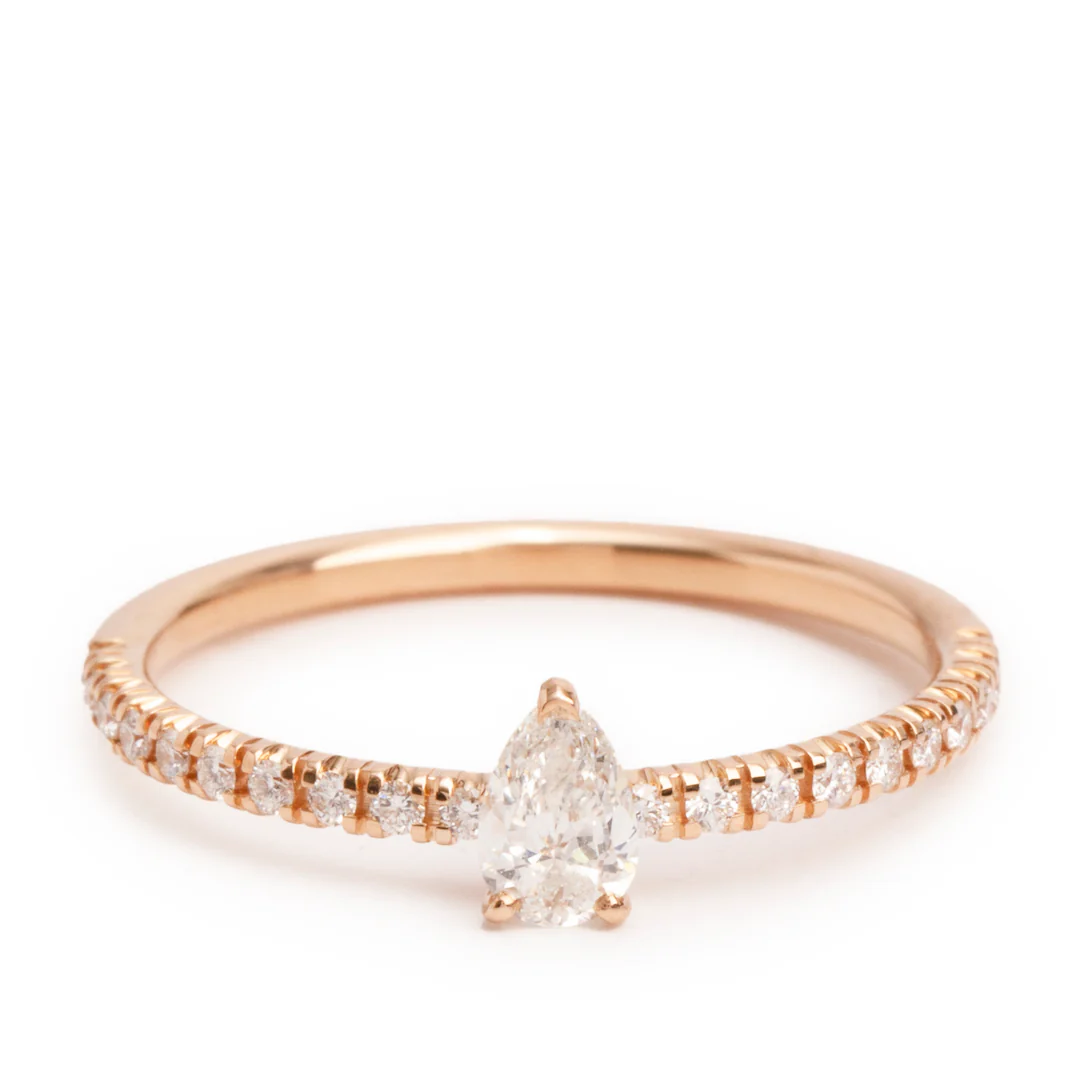 Be the first to review “18k Rose Gold Pear Shaped Diamond Etincelle de Ring, Size 50 5.25”