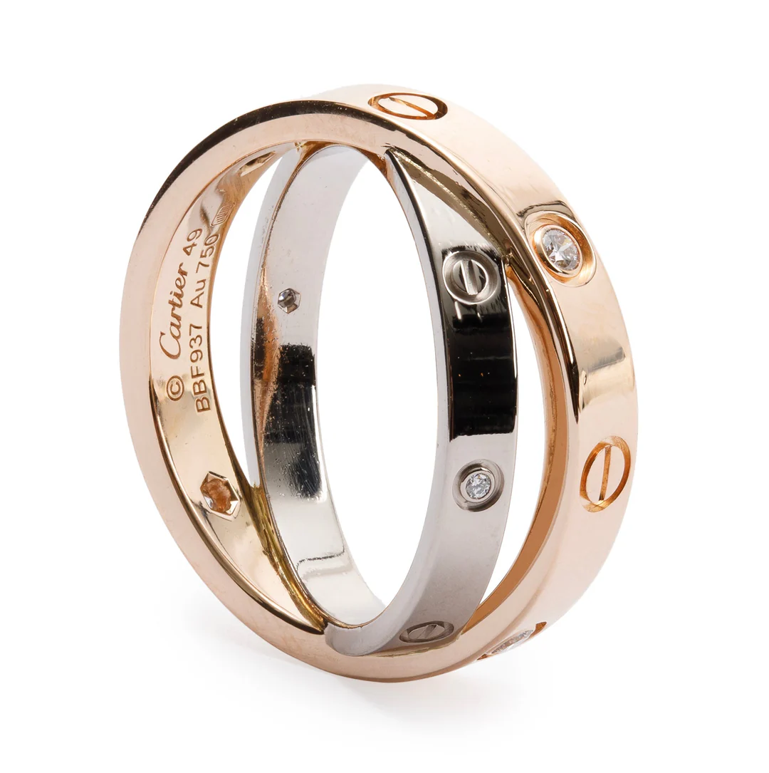 18k White Gold and Rose Gold Interlocking Love Ring with 6 Diamonds w/ Box