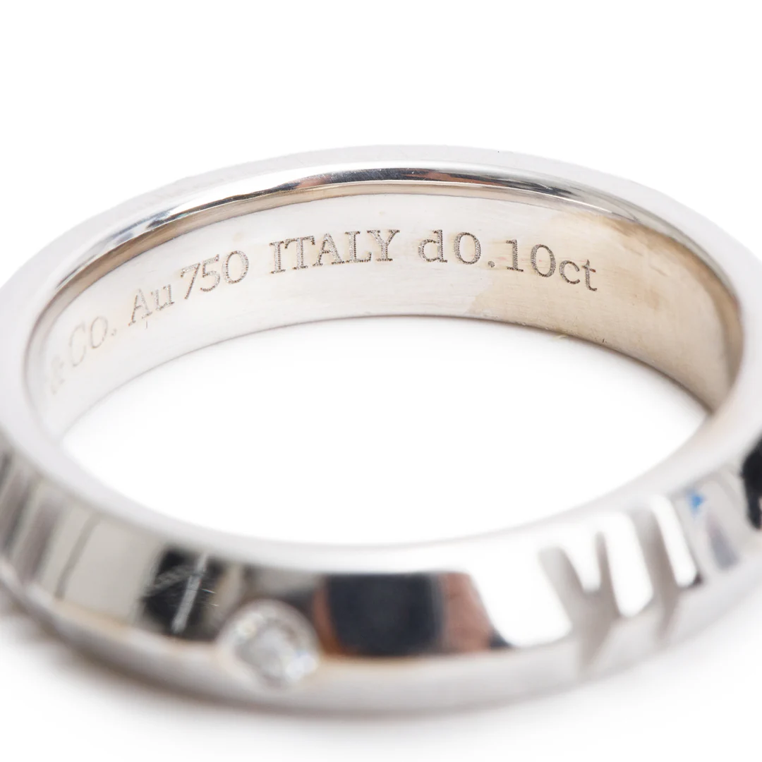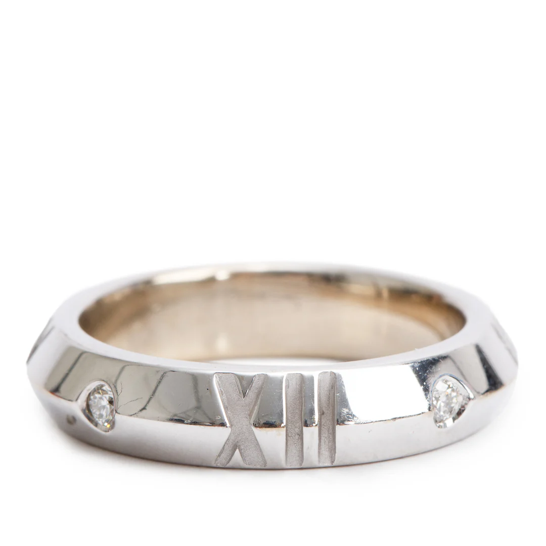Be the first to review “18k White Gold Diamond Atlas X Closed Narrow Band Ring, Size 6 w/ Box”