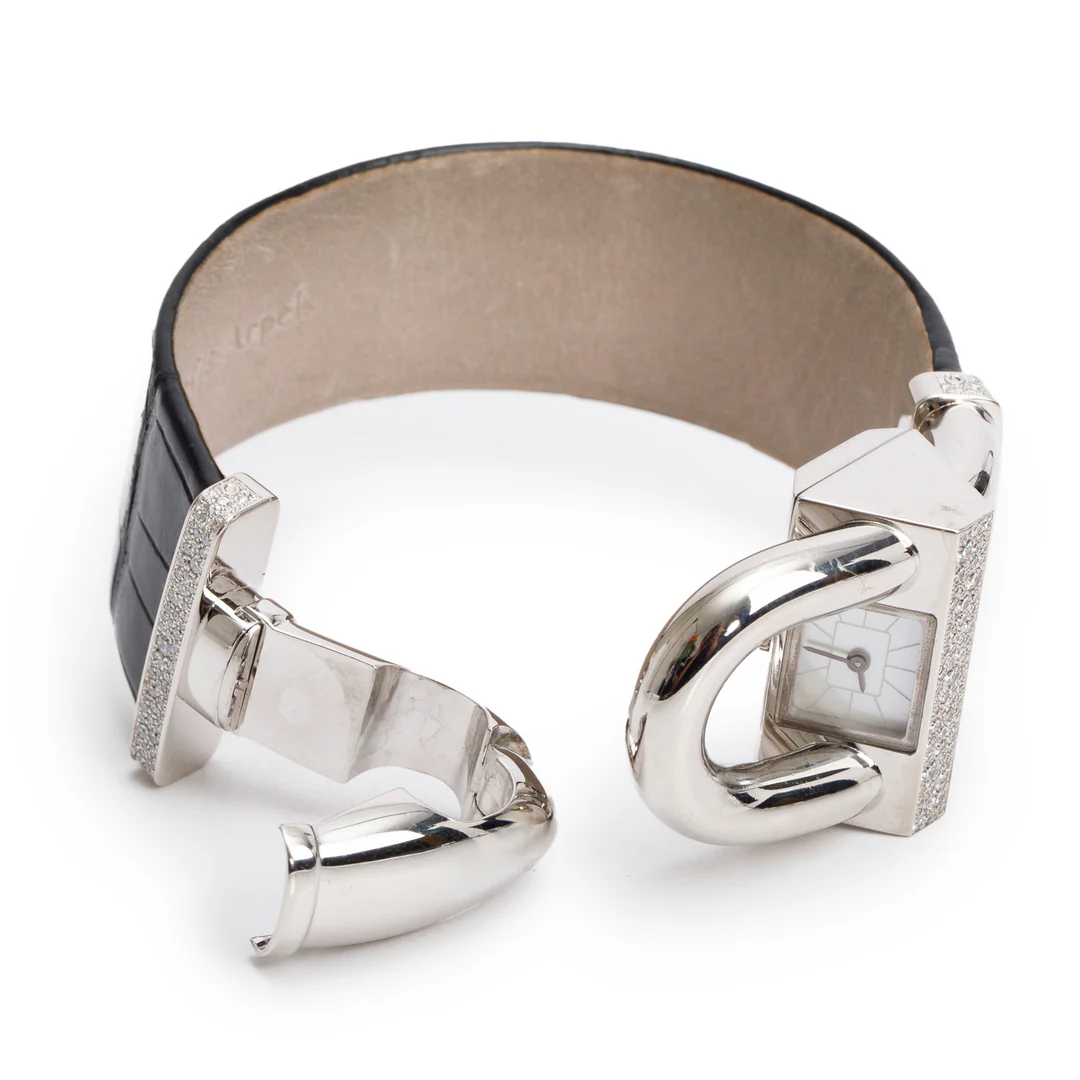 18k White Gold Diamond Cadenas Watch Mother of Pearl Dial w/ Receipt & Certificate