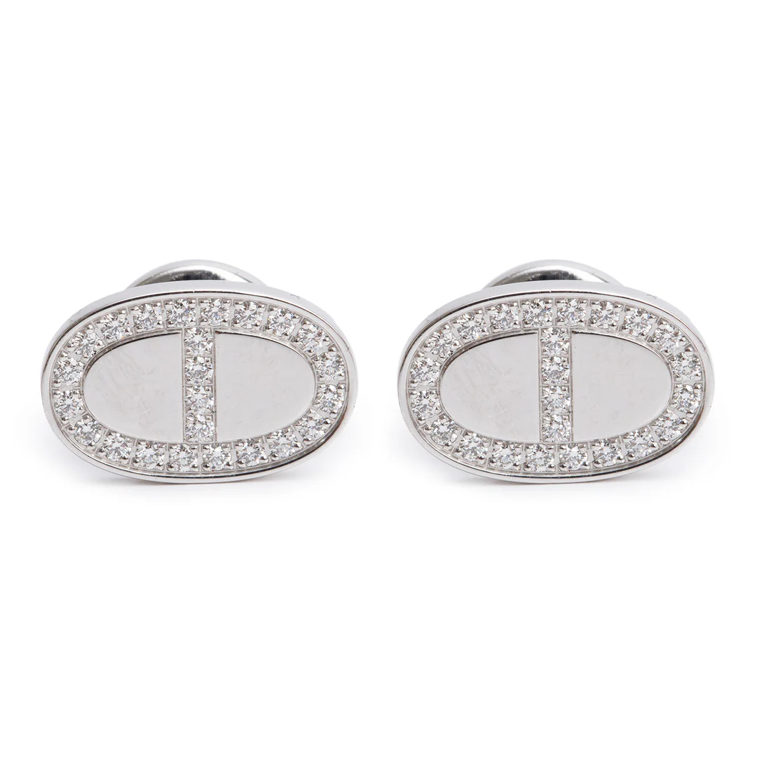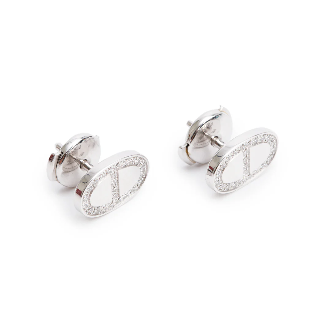 Be the first to review “18k White Gold Diamond Chaine D’Ancre Contour Stud Earrings w/ Box”