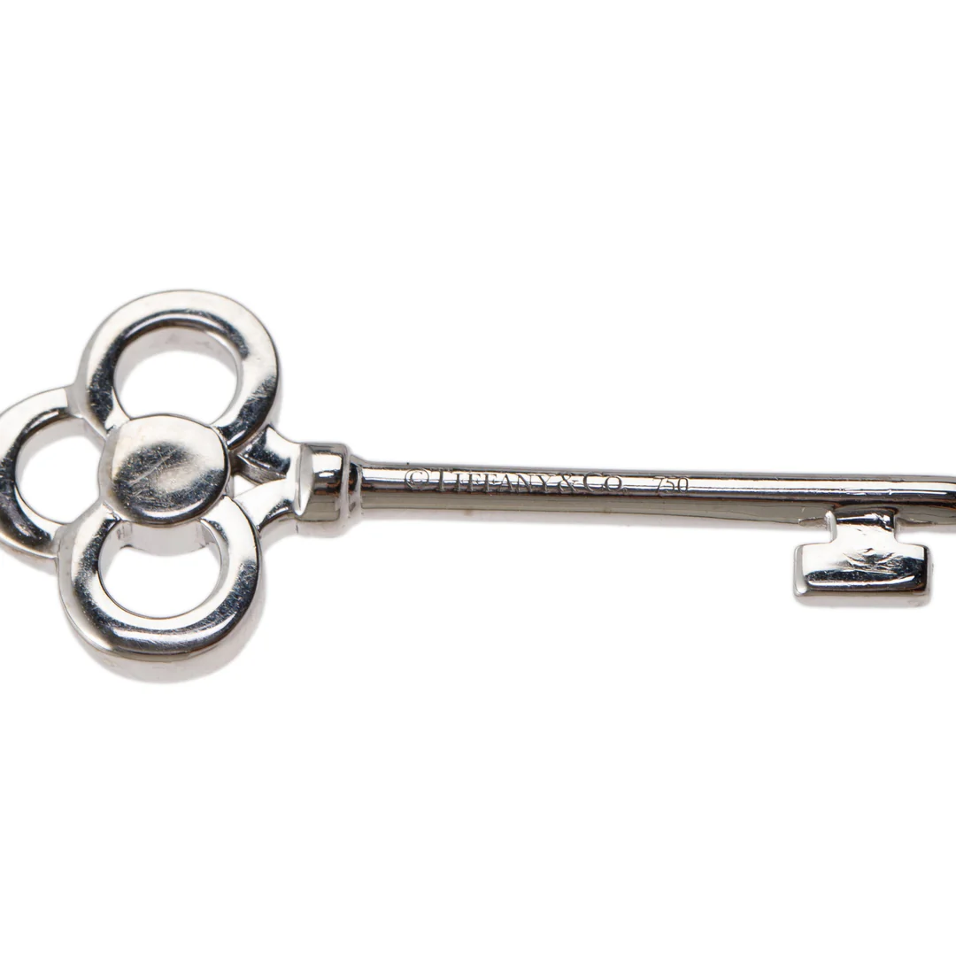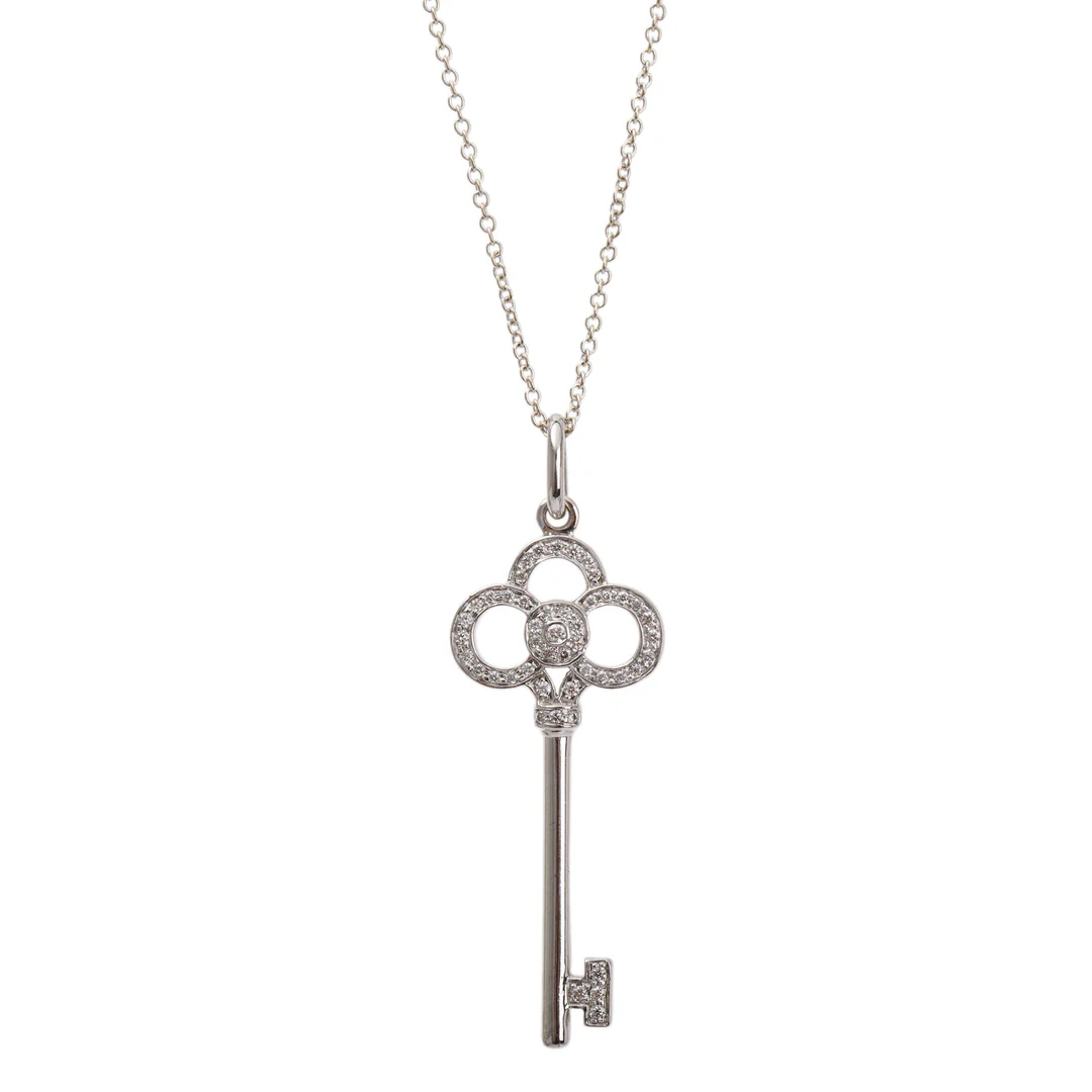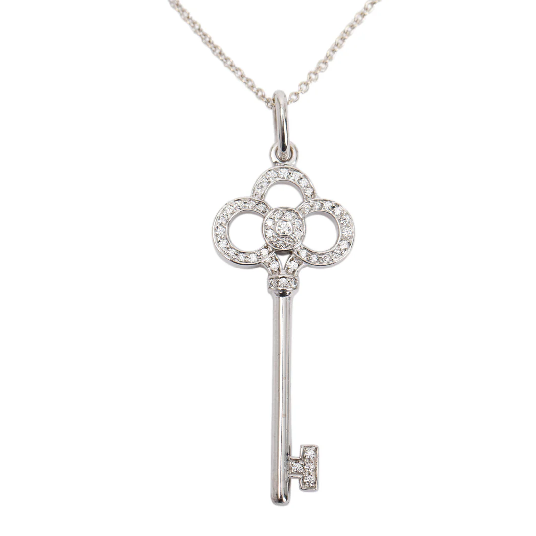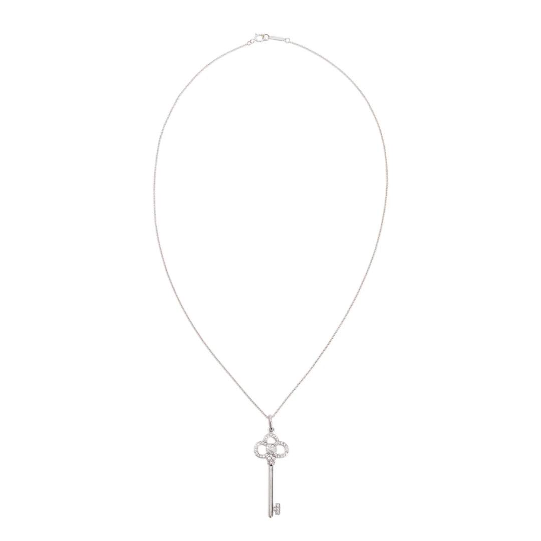 Tiffany & Co. 18k White Gold & Diamond Crown Key Pendant Necklace