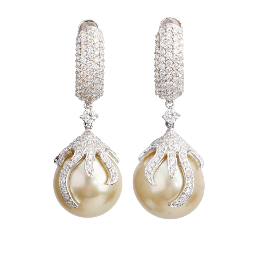 18k White Gold Diamond & South Sea Pearl Drop Earrings