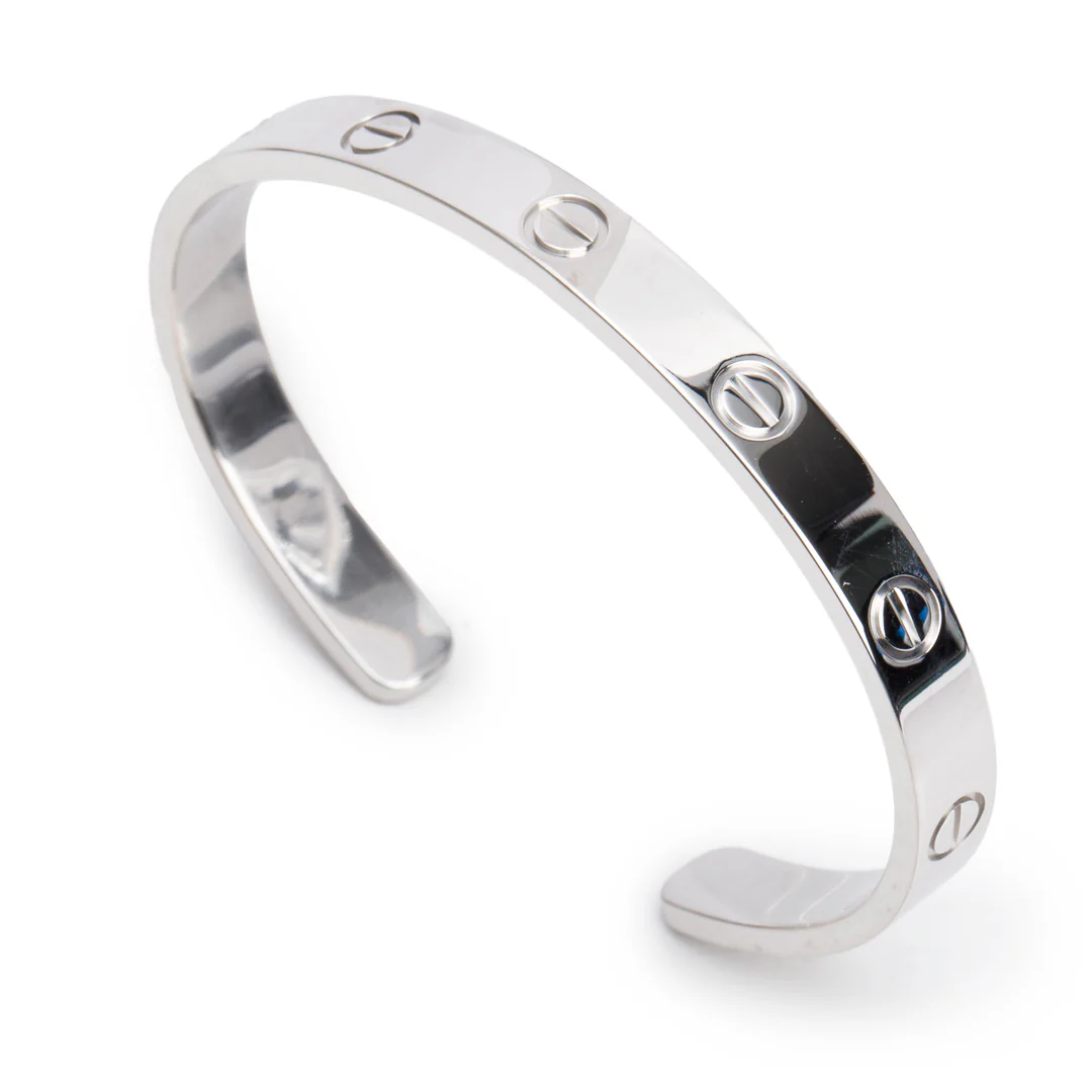 18k White Gold Love Cuff, Size 17
