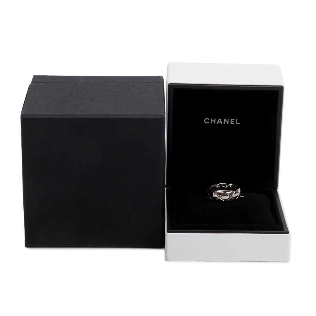 18k White Gold Quilted Coco Crush Band Ring, Size 57 8, Small Version w/ Box