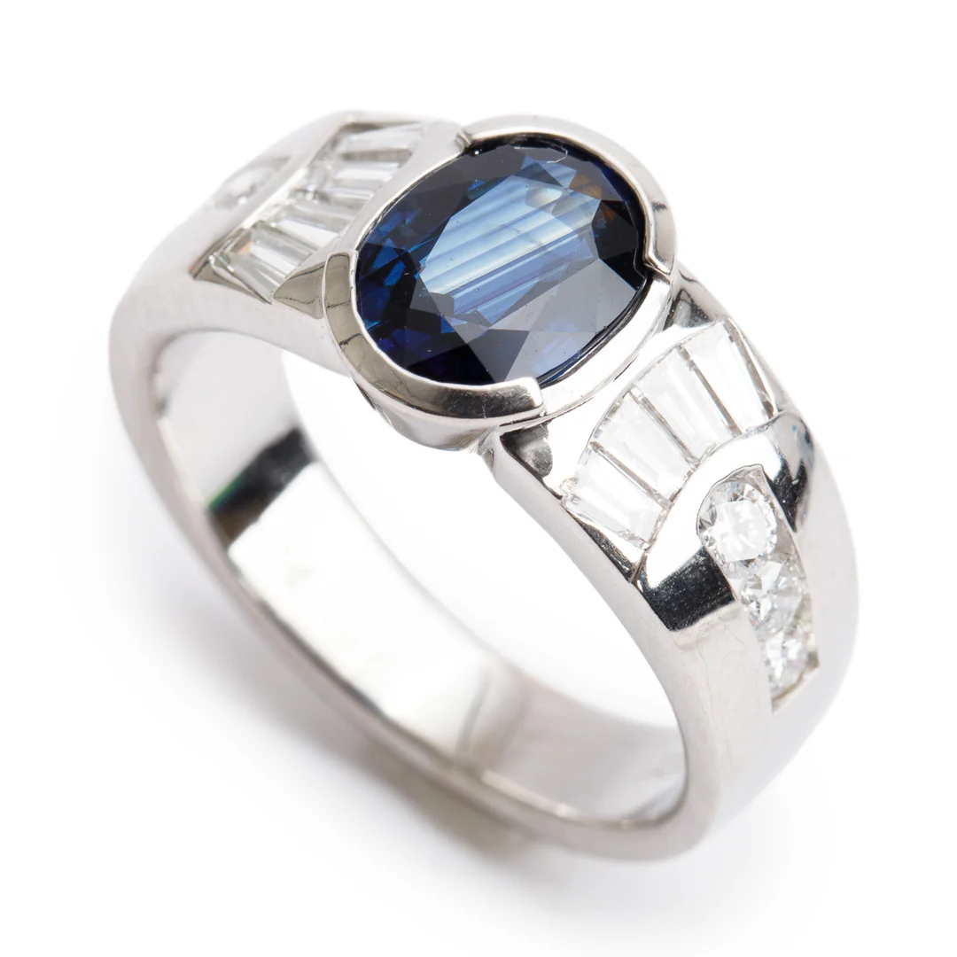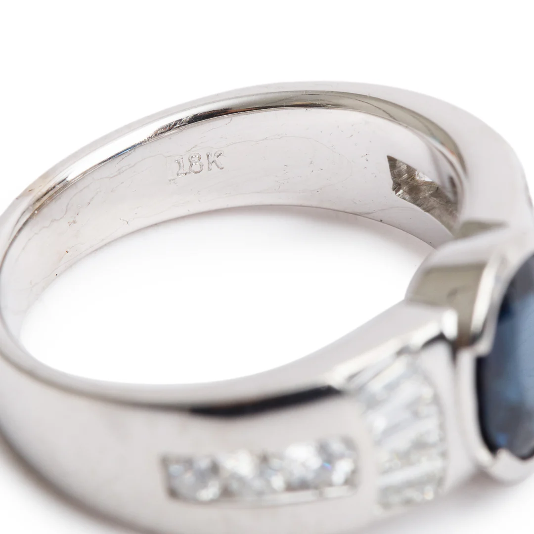 18k White Gold Sapphire & Diamond Ring, Size 6