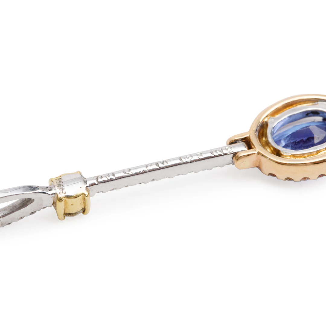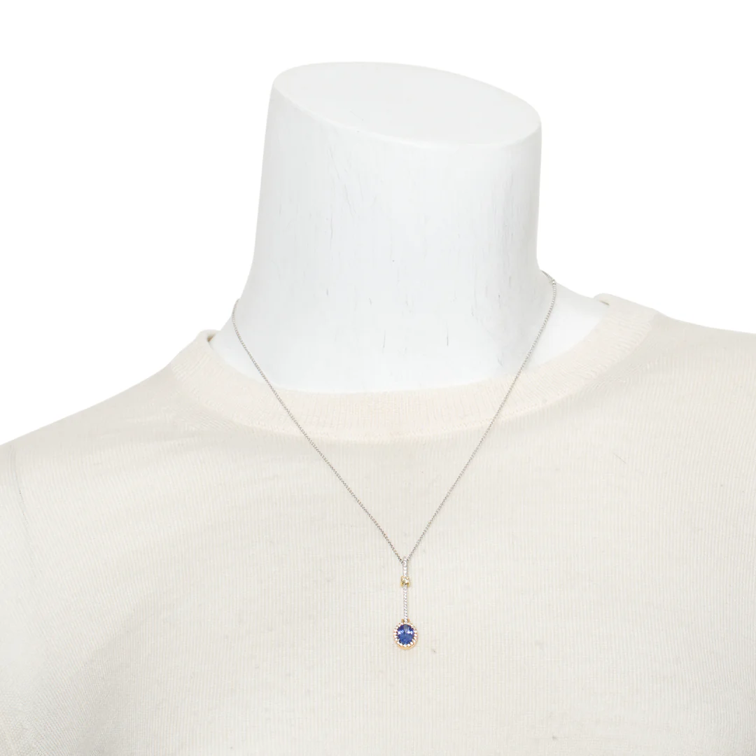 18k Yellow and White Gold Tanzanite & Diamond Drop Pendant Necklace