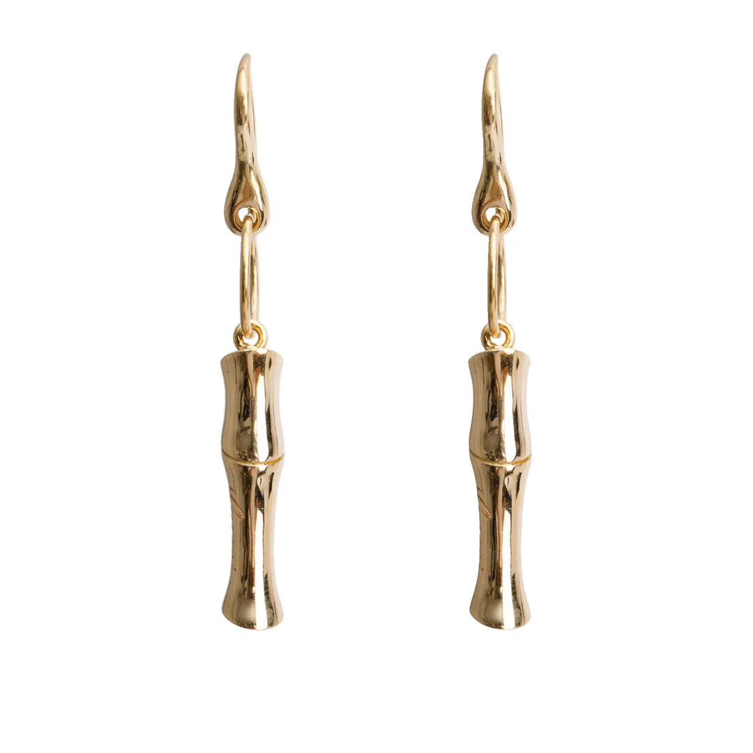 18k Yellow Gold Bamboo Drop Earrings w/ Box