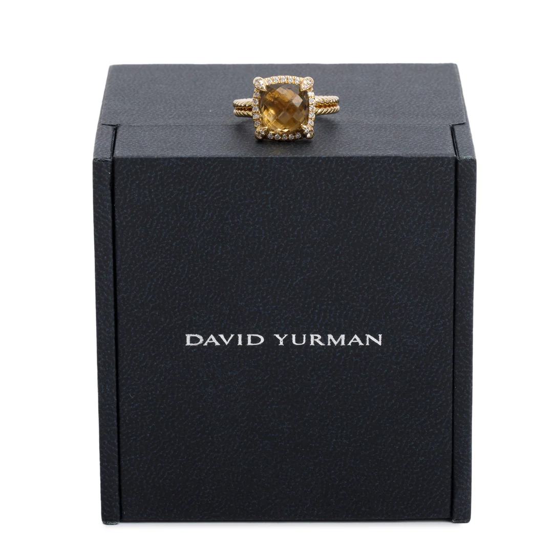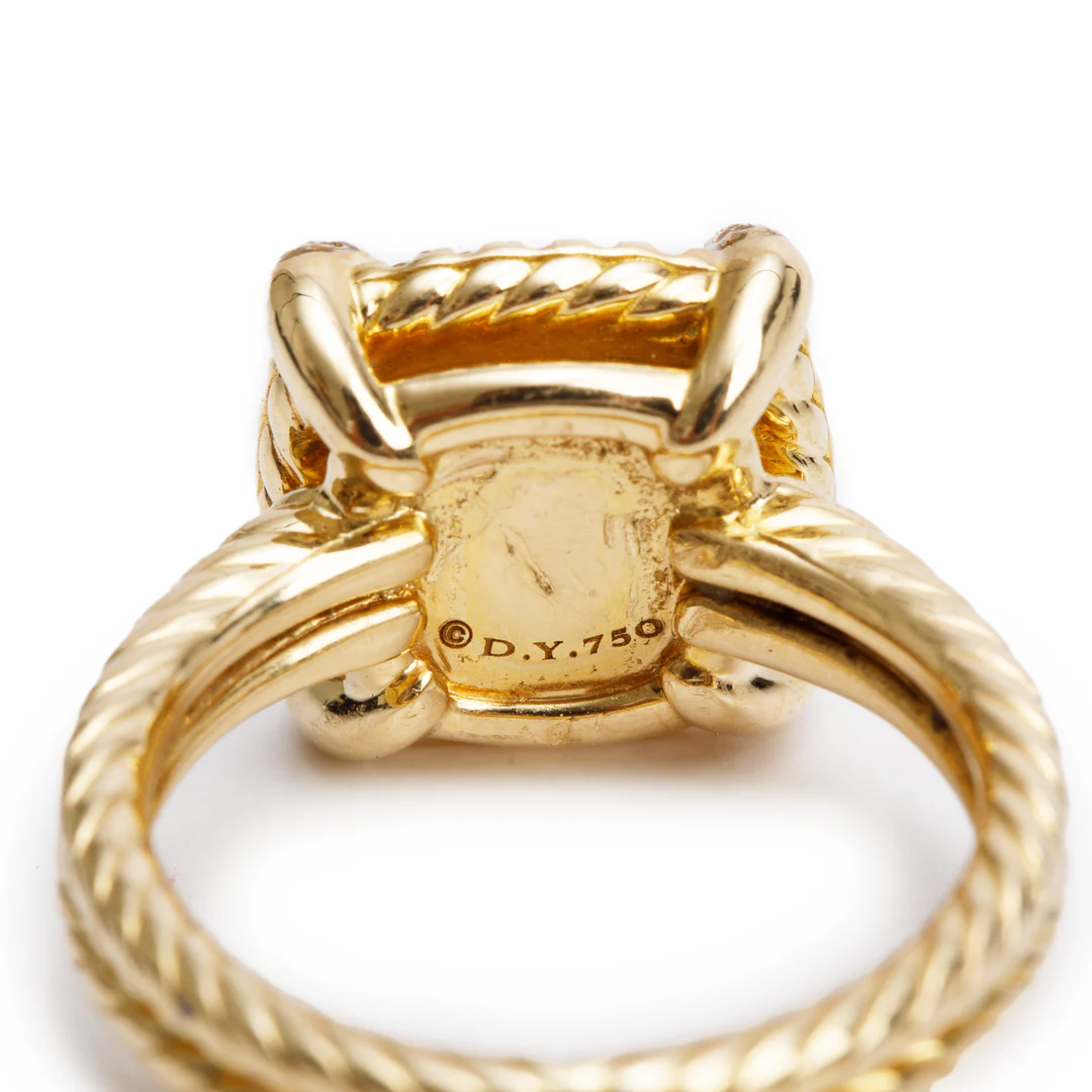 18k Yellow Gold Champagne Citrine & Diamond Chatelaine Ring, Size 5 w/ Box