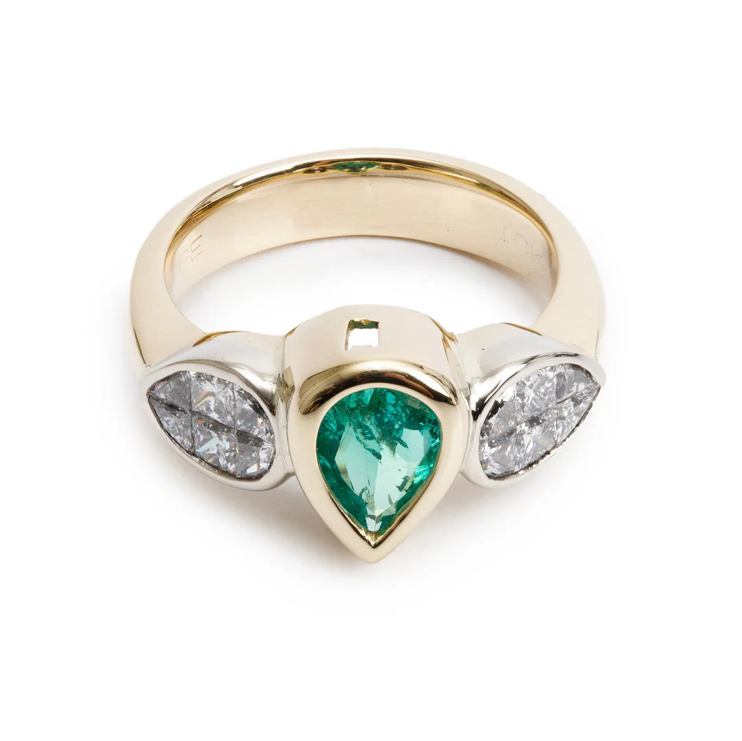 Be the first to review “18k Yellow Gold Emerald & Diamond Cocktail Ring, Size 6”