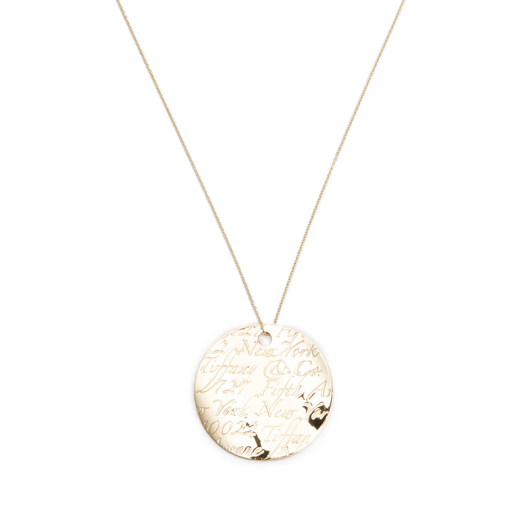 18k Yellow Gold Large Notes Round Pendant Necklace w/ Box