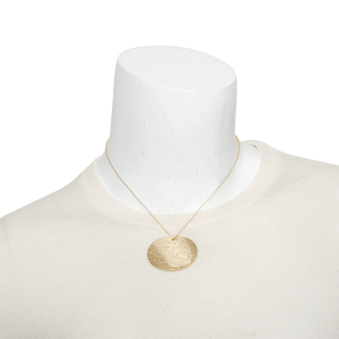 Be the first to review “18k Yellow Gold Large Notes Round Pendant Necklace w/ Box”