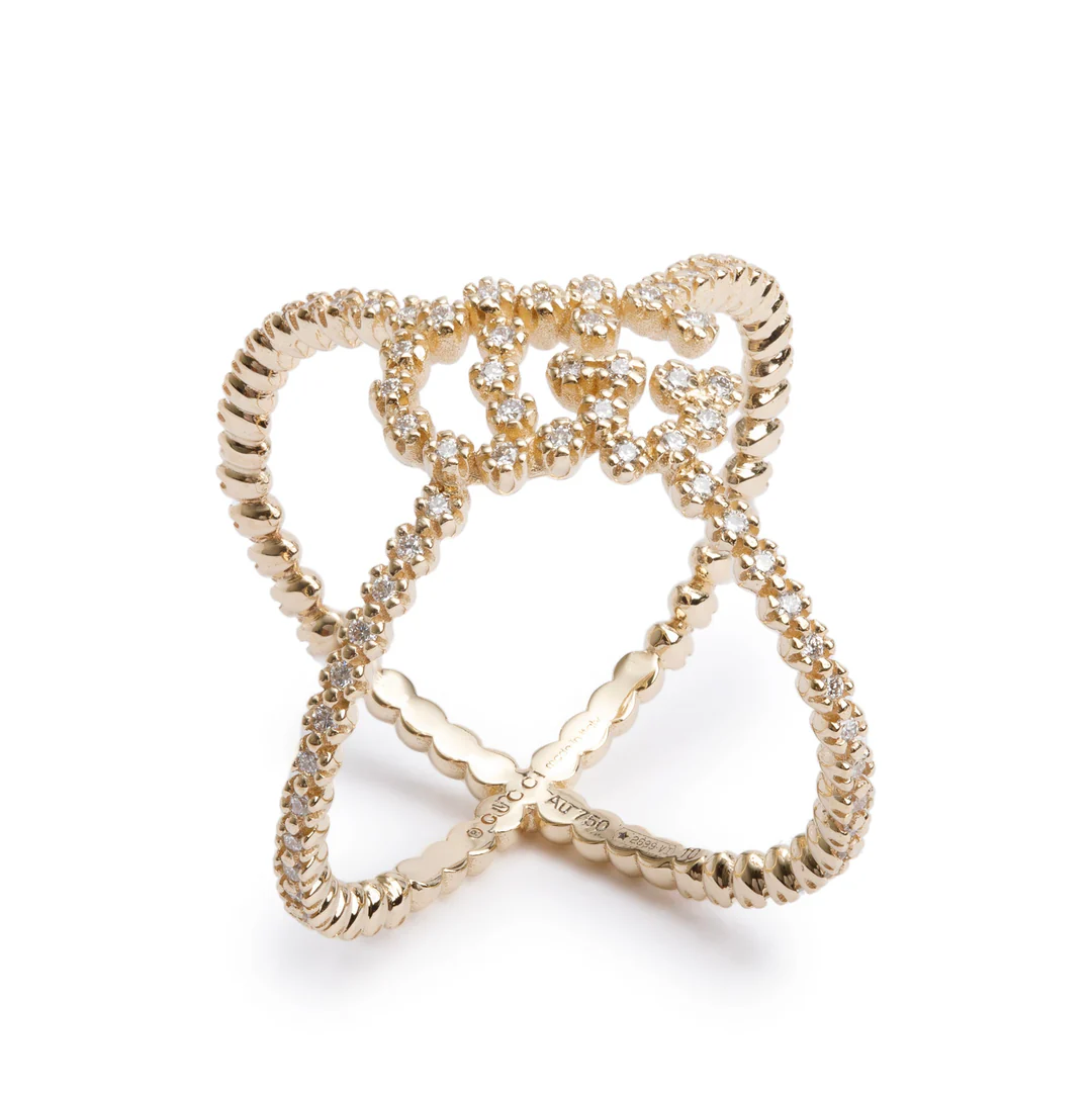 18k Yellow Gold Pave Diamond Running GG X Ring, Size 10 4.75