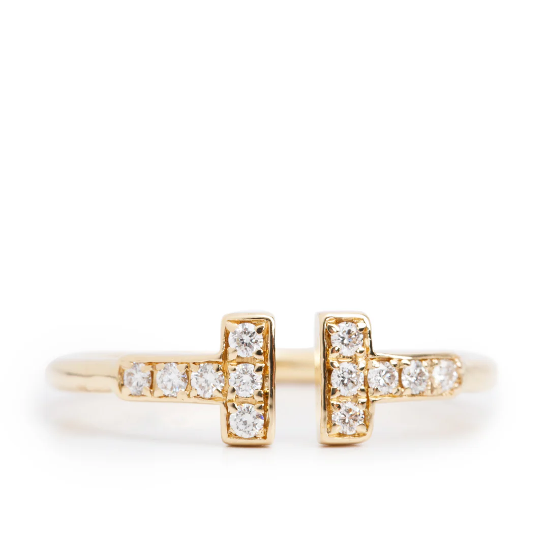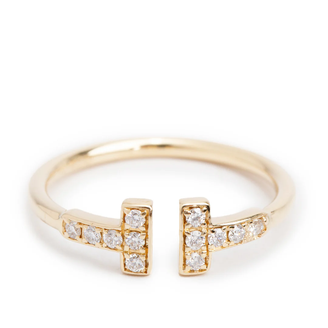 18k Yellow Gold T Wire Diamond Ring, Size 6.75 w/ Box