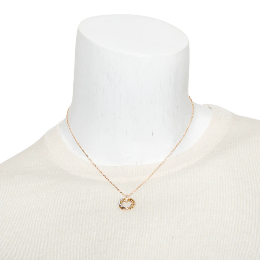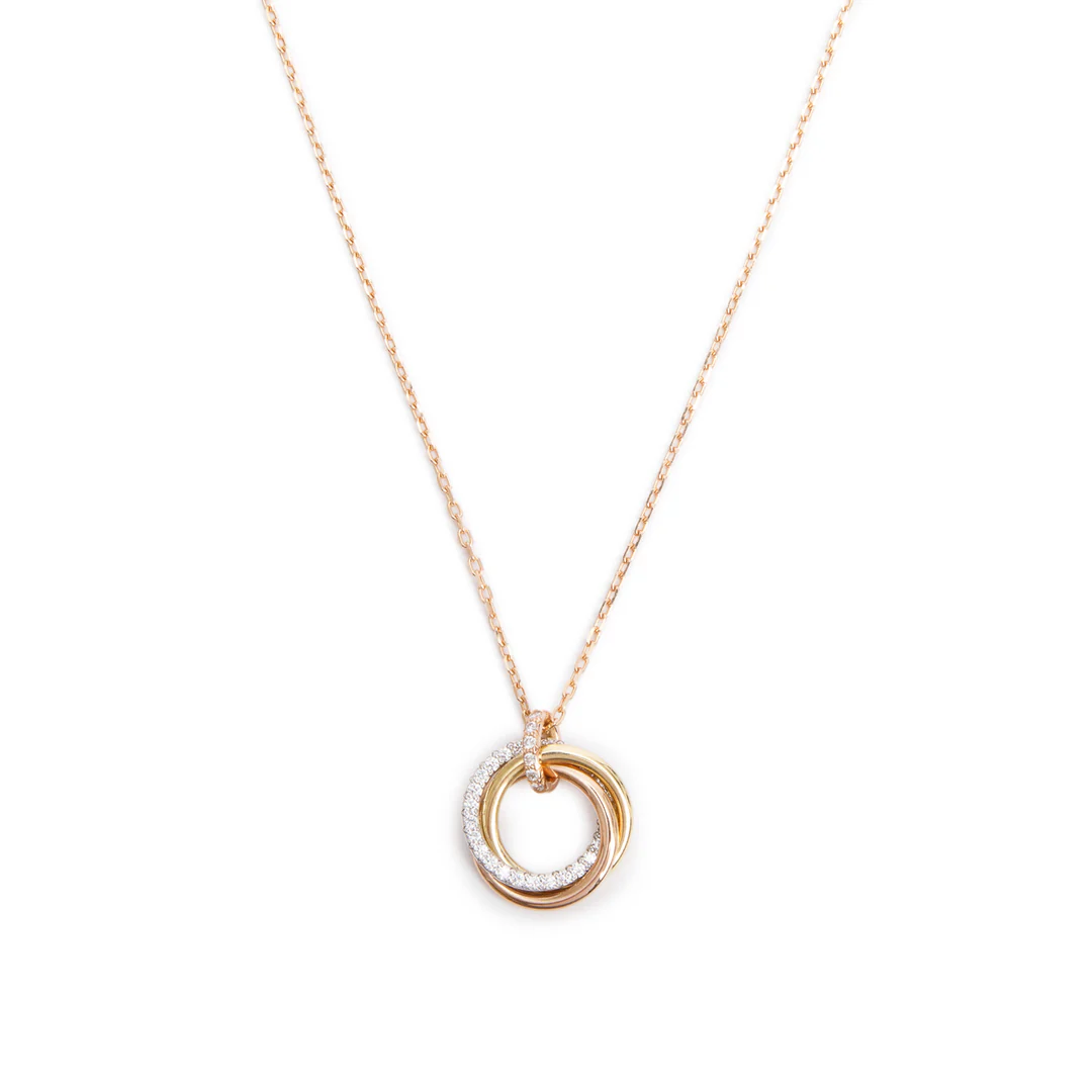 18k Yellow, White & Rose Gold Half Paved Diamond Trinity Pendant Necklace, Small Model w/ Box