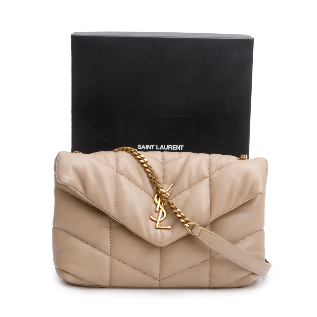 2020 Dark Beige Lambskin Quilted Toy Loulou Monogram Chain Satchel w/ Box