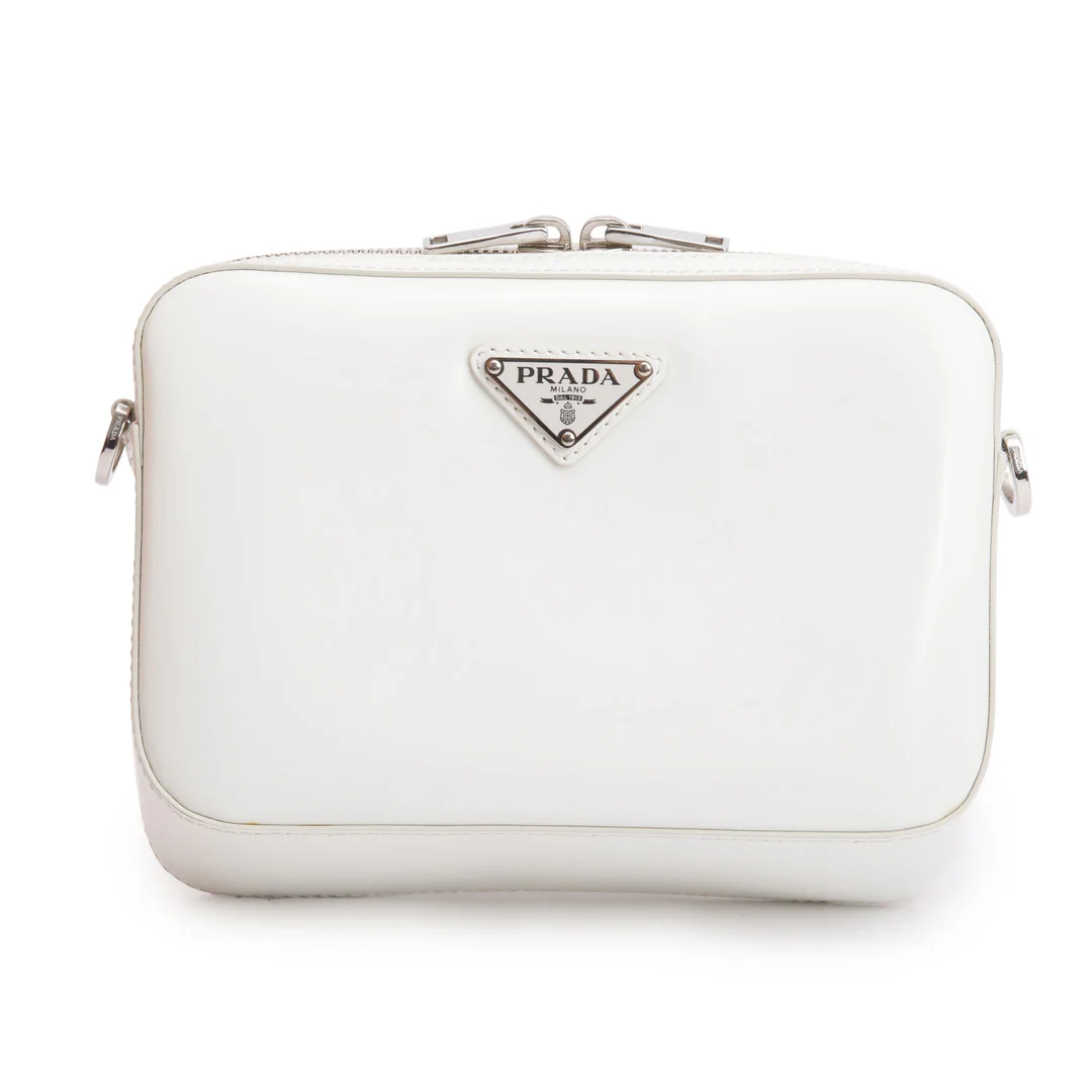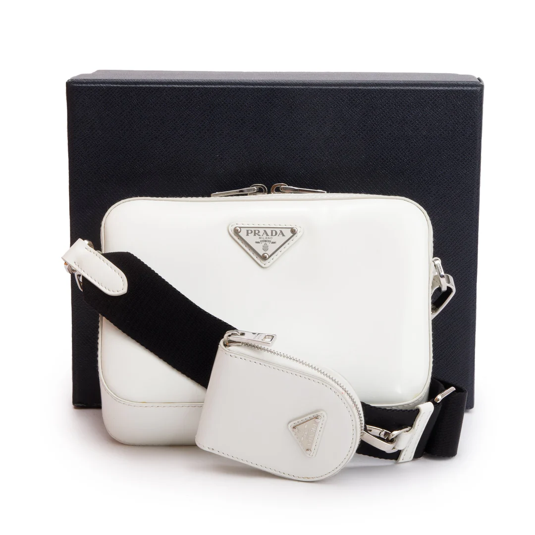 2021 White Spazzolato Leather Small Brique Crossbody Bag w/ Box & Authenticity Card
