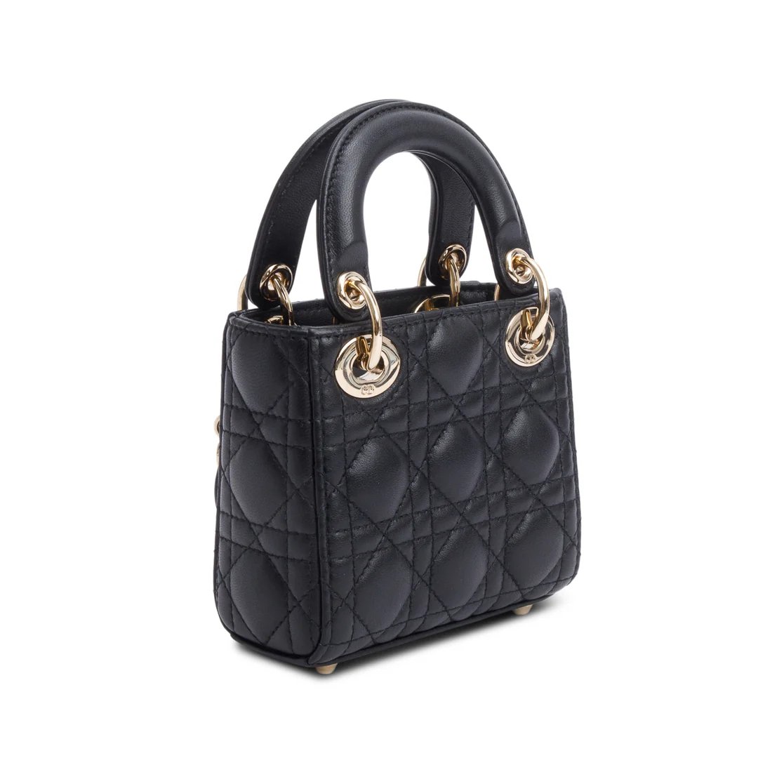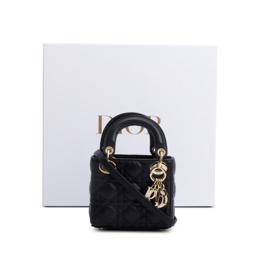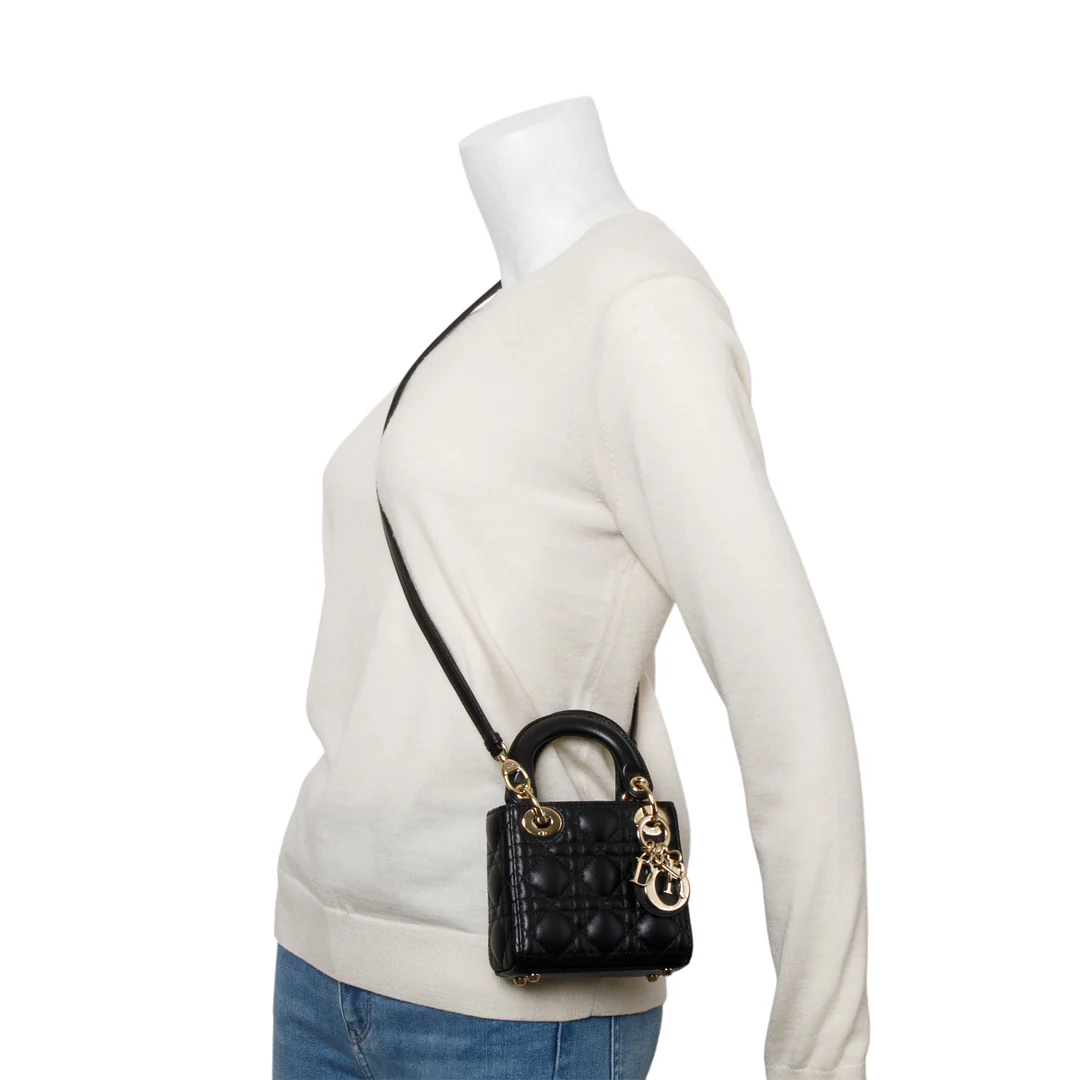 2022 Black Leather Micro Lady Dior Bag w/ Box & Receipt