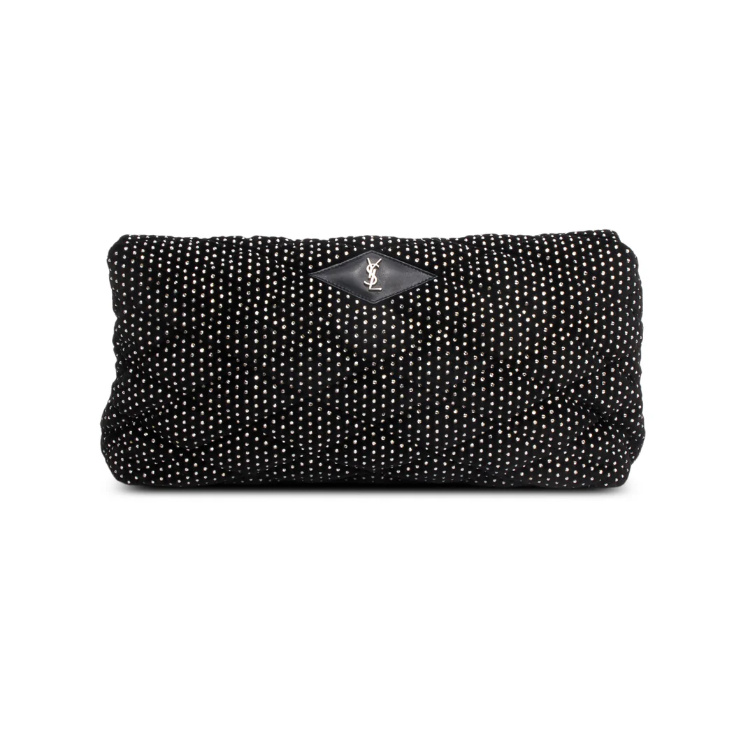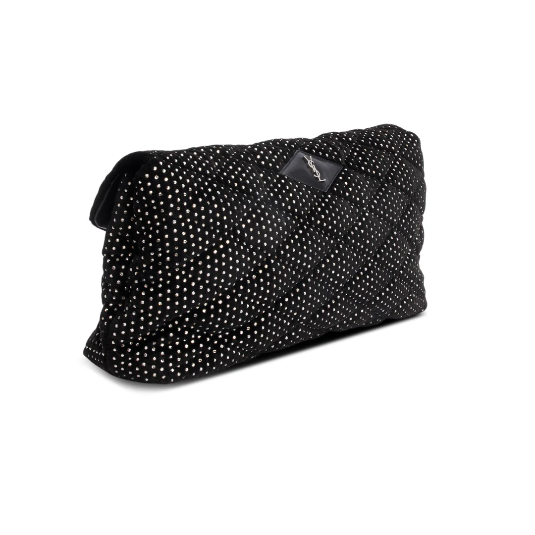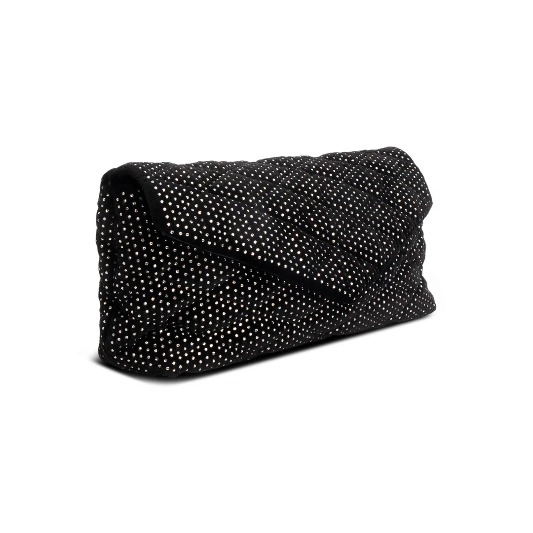 2022 Black Velvet Crystal Sade Puffer Large Envelope Clutch