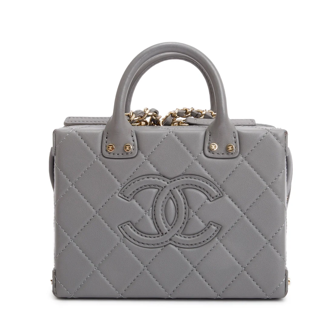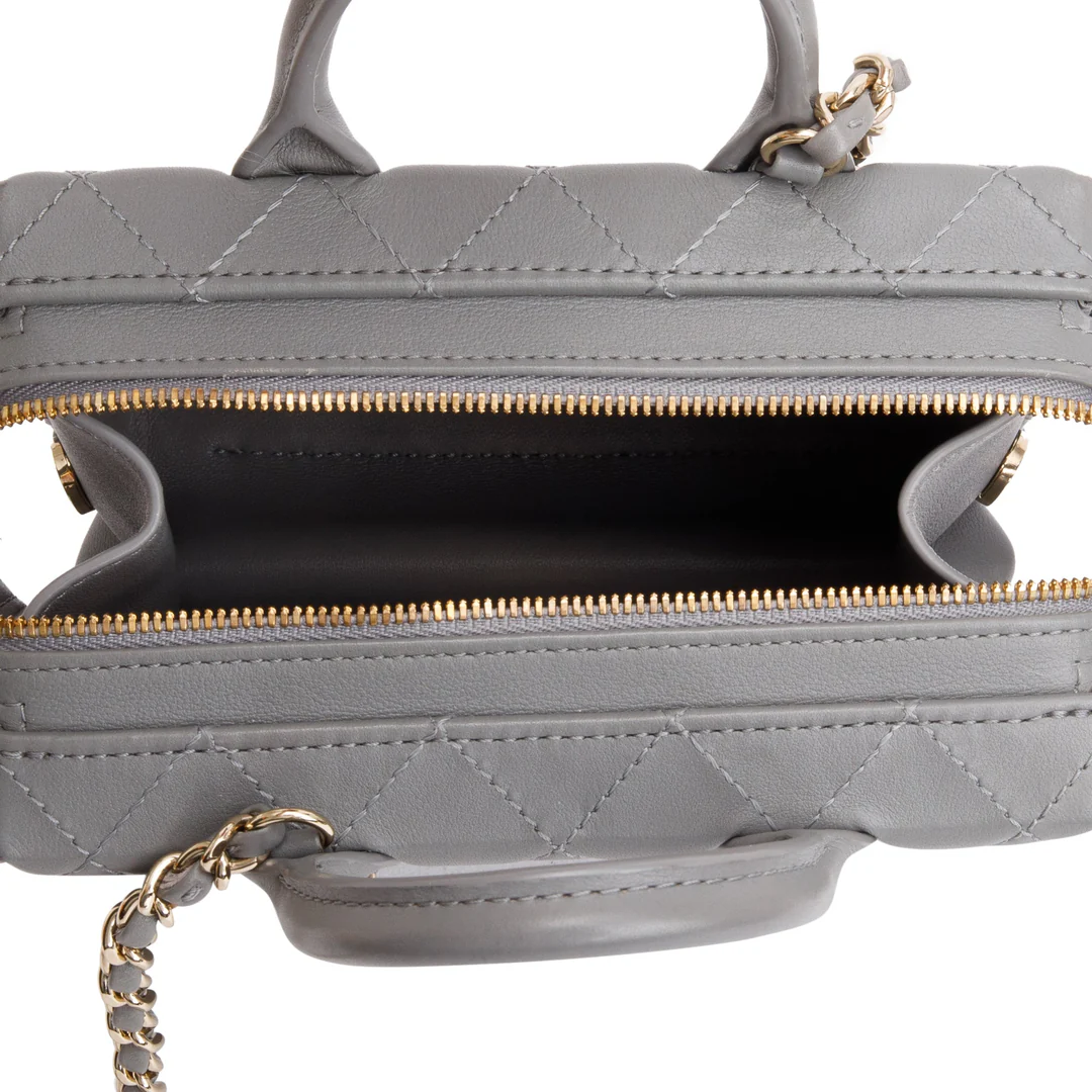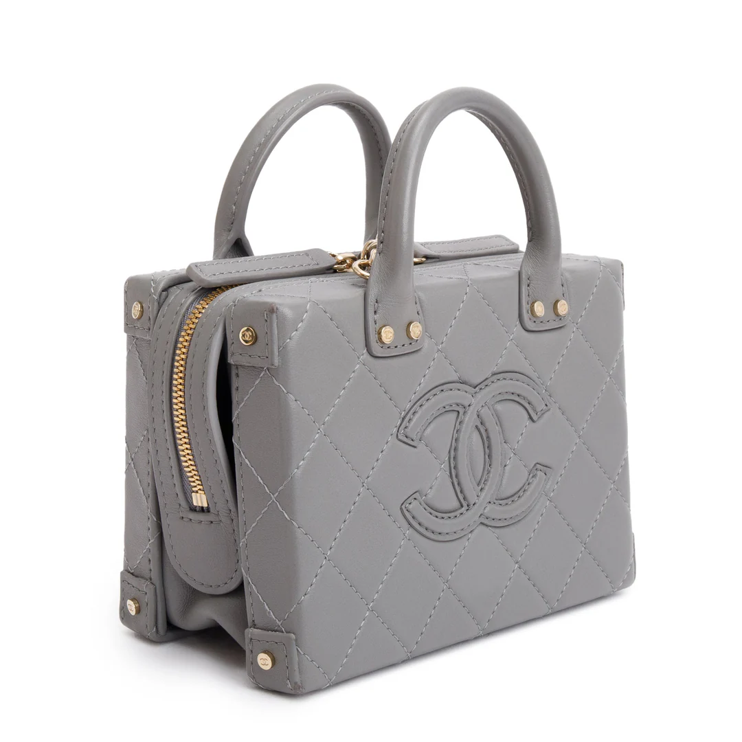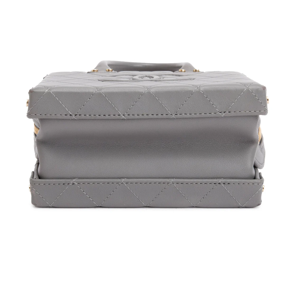 2022 Grey Quilted Calfskin Leather Coco Vault Small Vanity Case