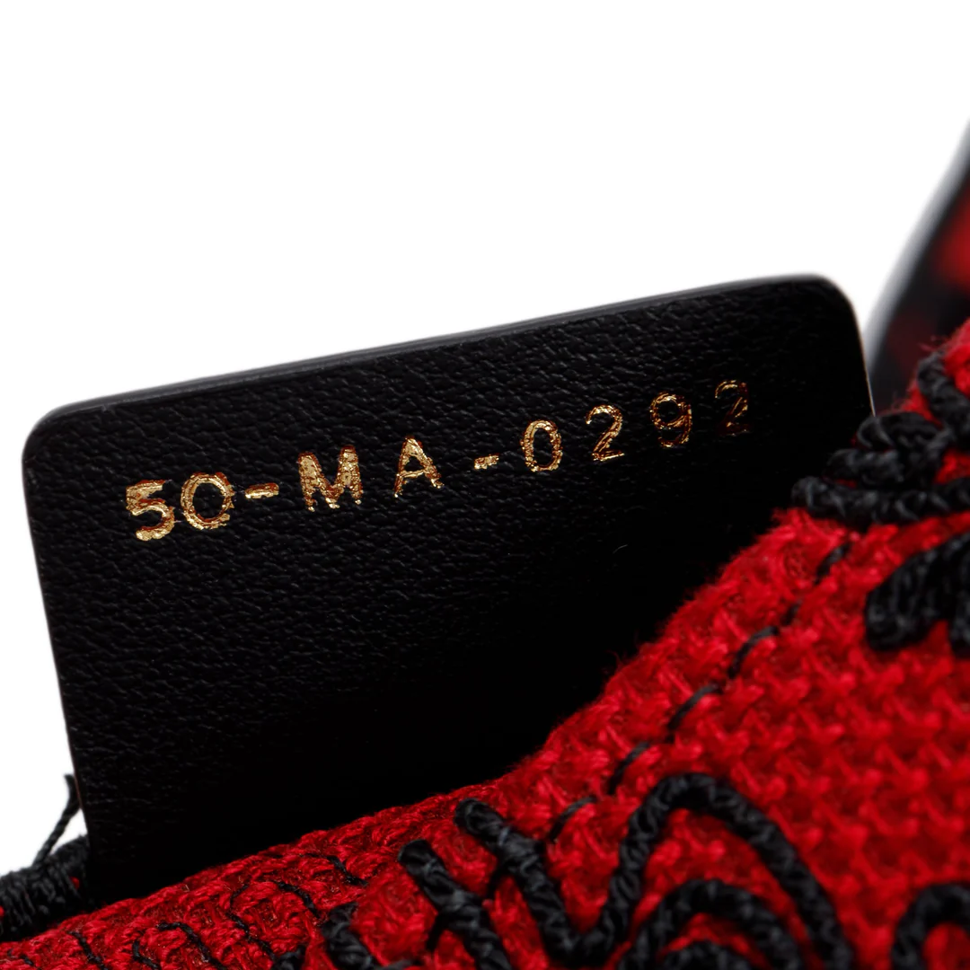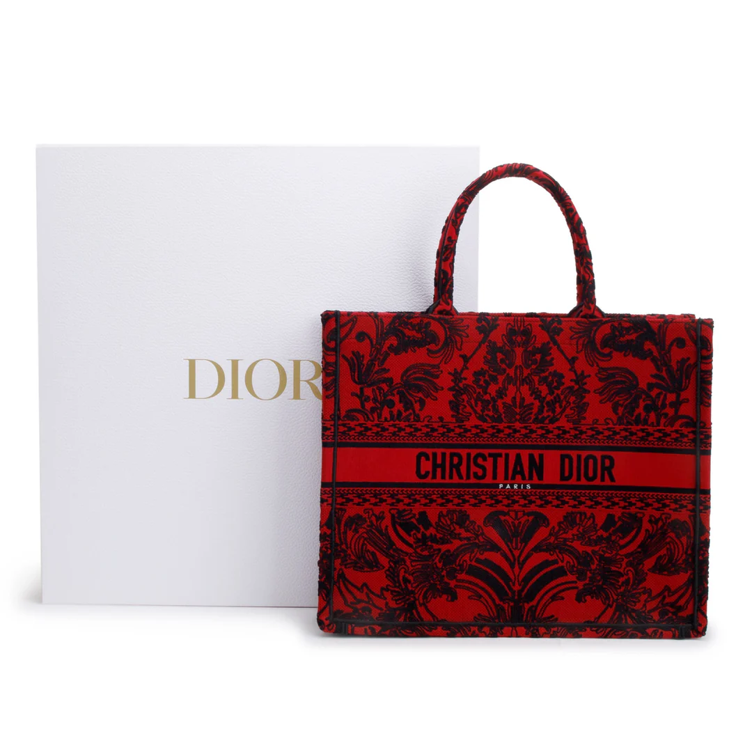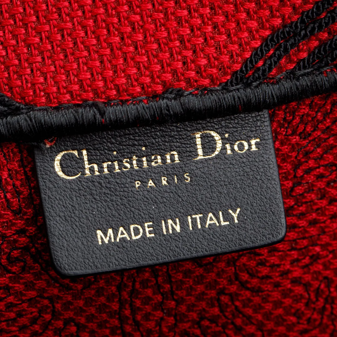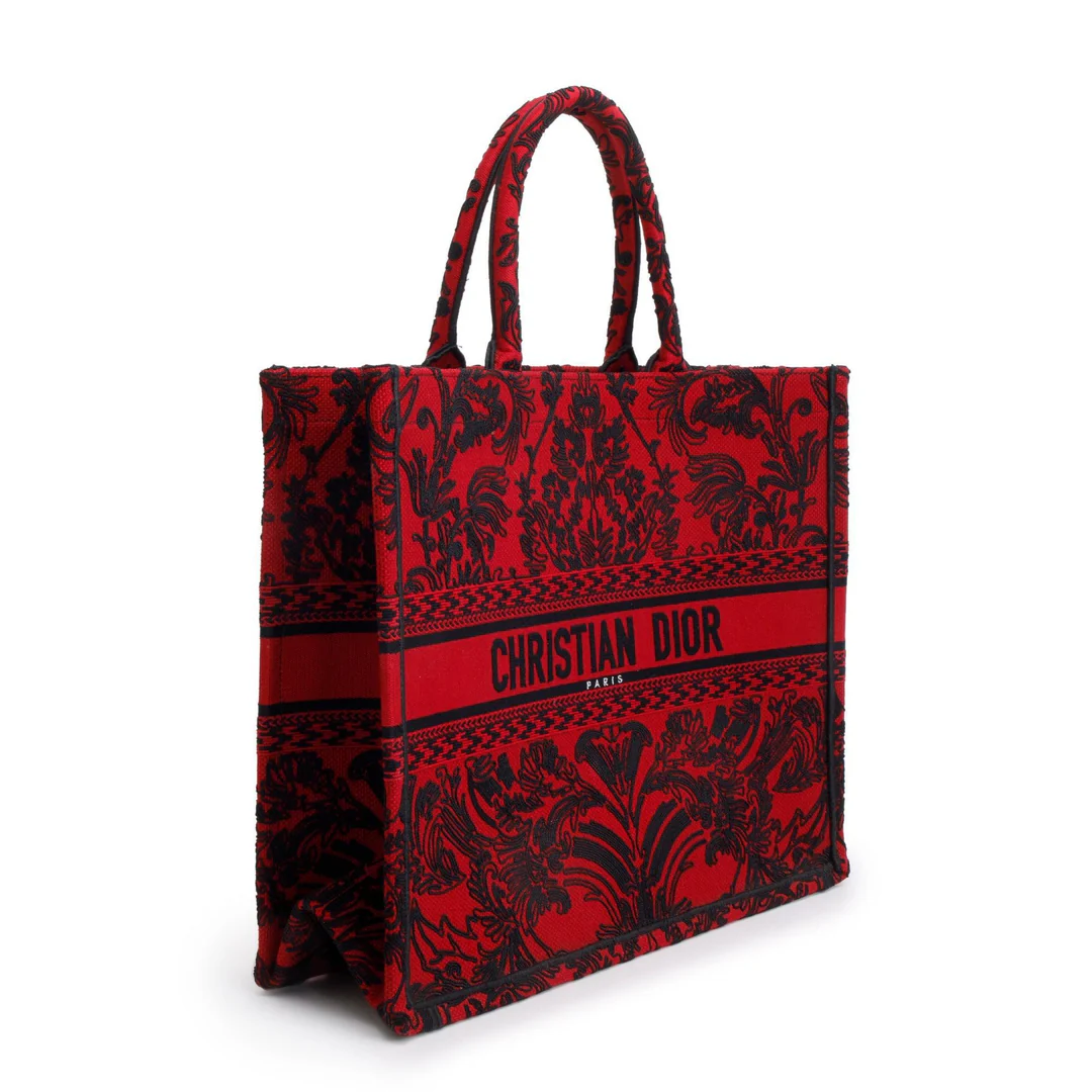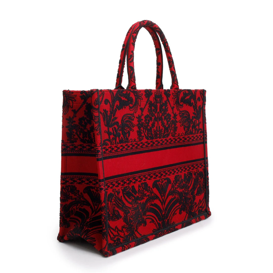 2022 Large Red and Black Toile de Jouy Embroidery Canvas Book Tote w/ Box