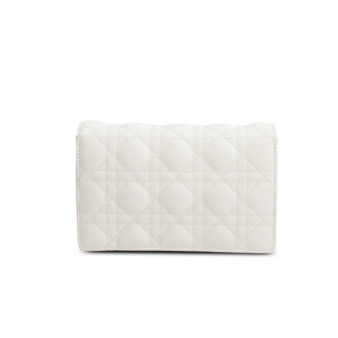 2022 White Lambskin Cannage My Dior Daily Chain Pouch