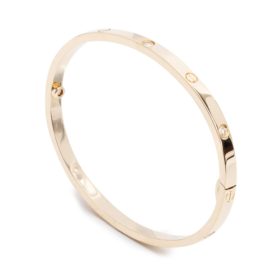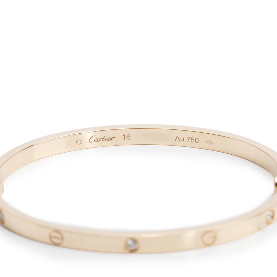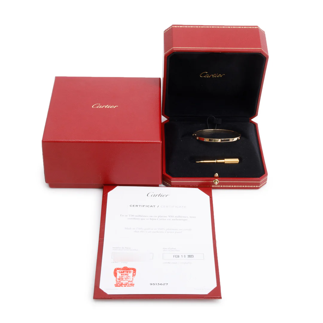 2023 18k Yellow Gold 6 Diamond Love Bracelet, Small Model, Size 16 w/ Box, Receipt & Certificate