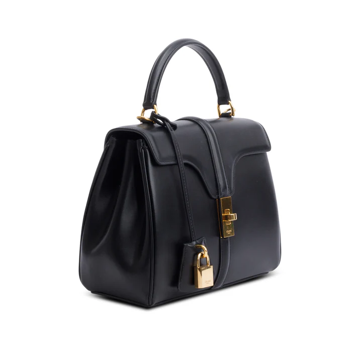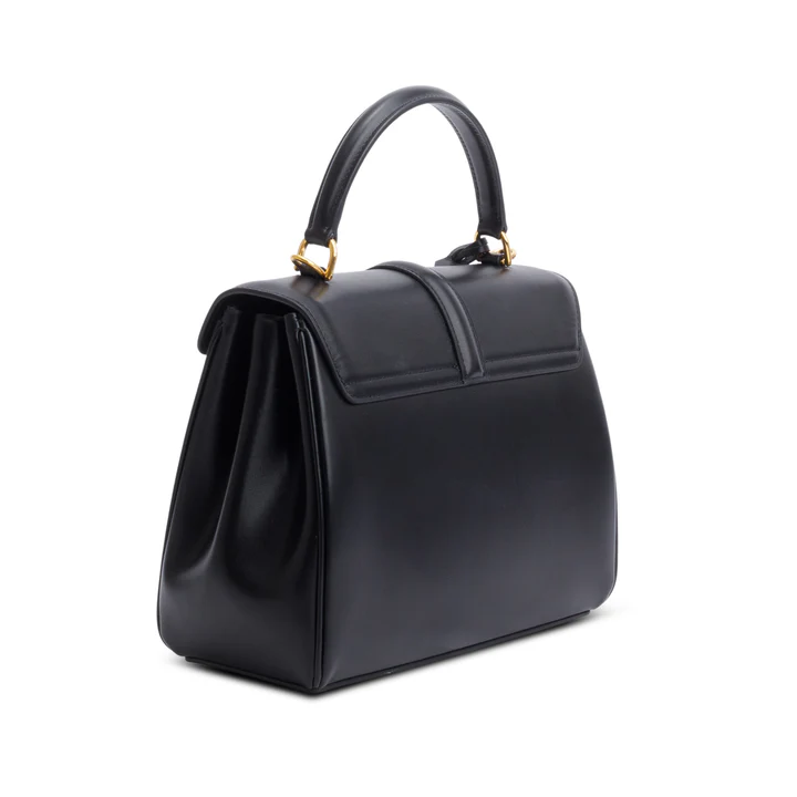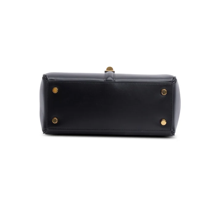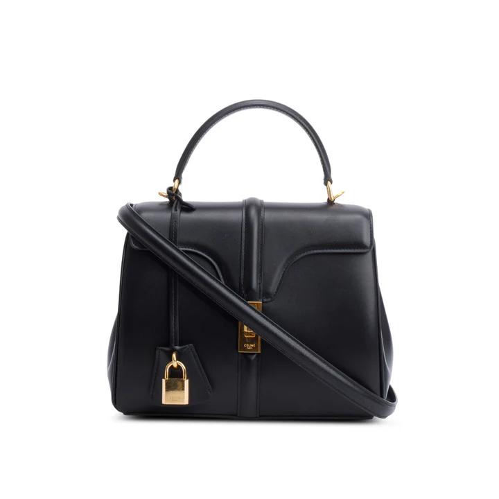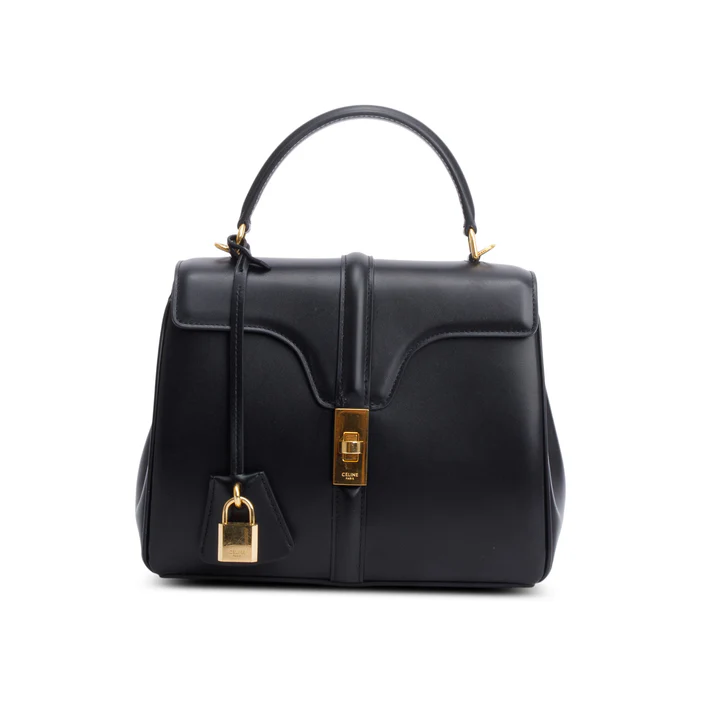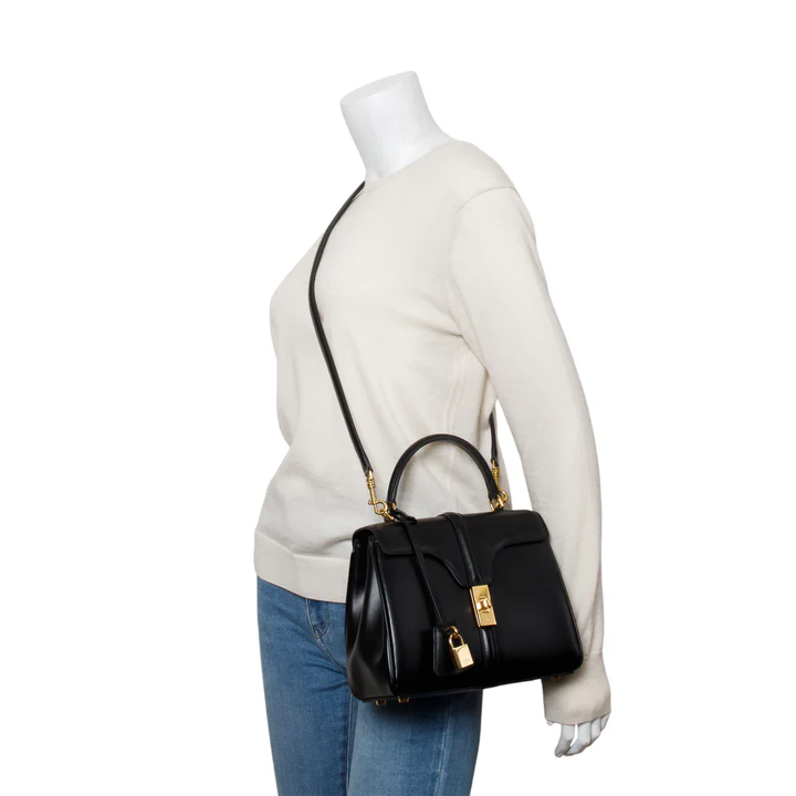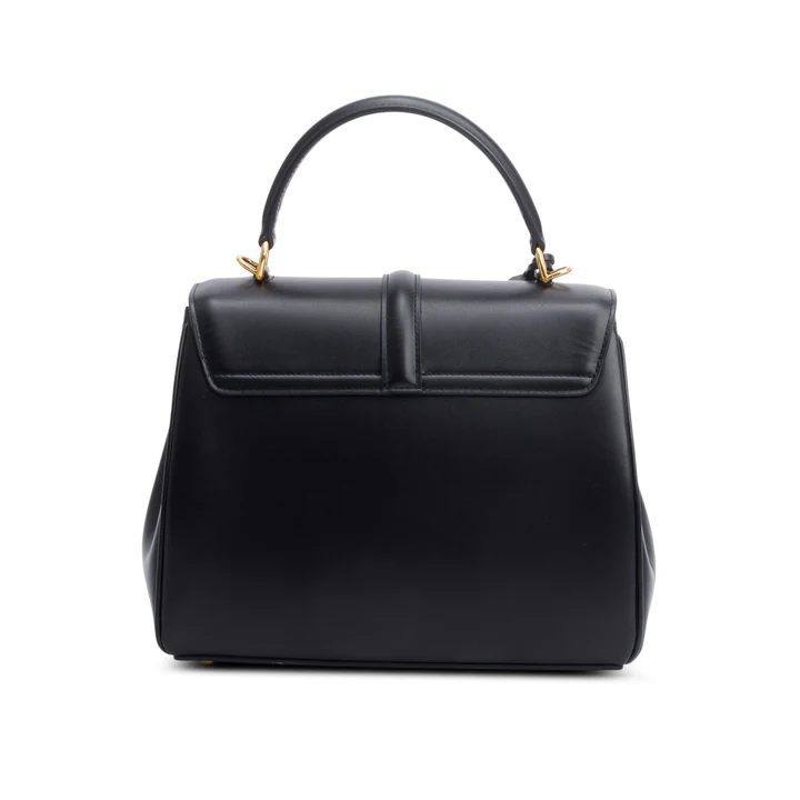2023 Black Satinated Calfskin Small 16 Top Handle Bag w/ Strap