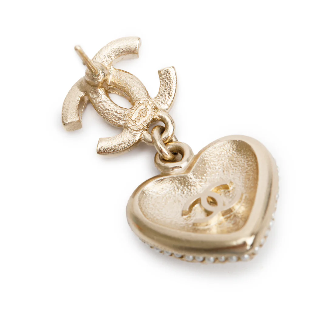 2023 Gold-Plated Faux Pearl & Strass CC Heart Drop Earrings