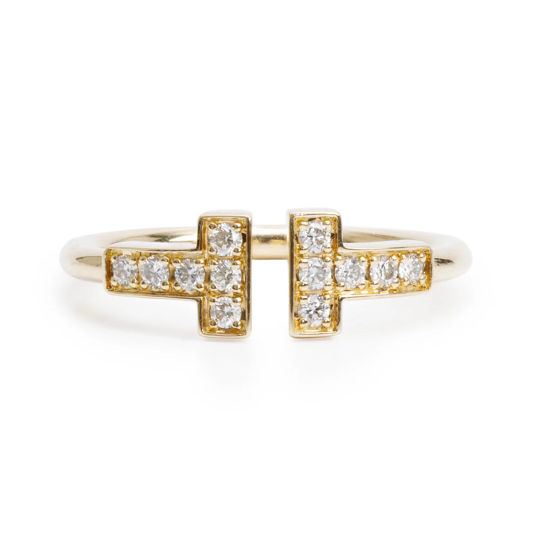 2024 18k Yellow Gold T Wire Diamond Ring, Size 5 w/ Box & Receipt