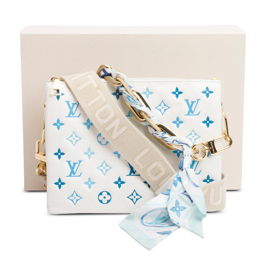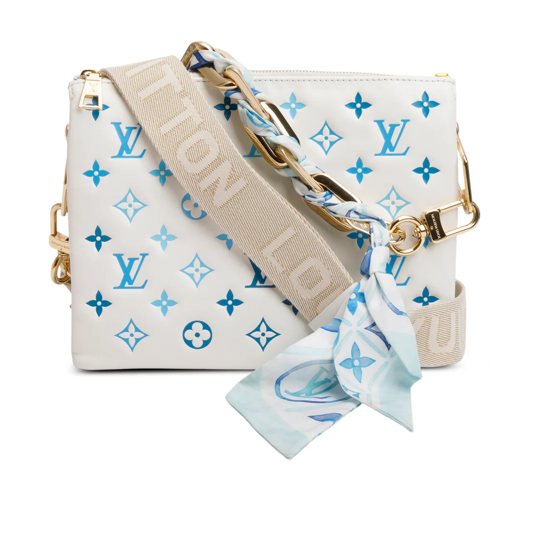 2024 White Lambskin Embossed Monogram By The Pool Coussin PM w/ Box, Scarf & Receipt