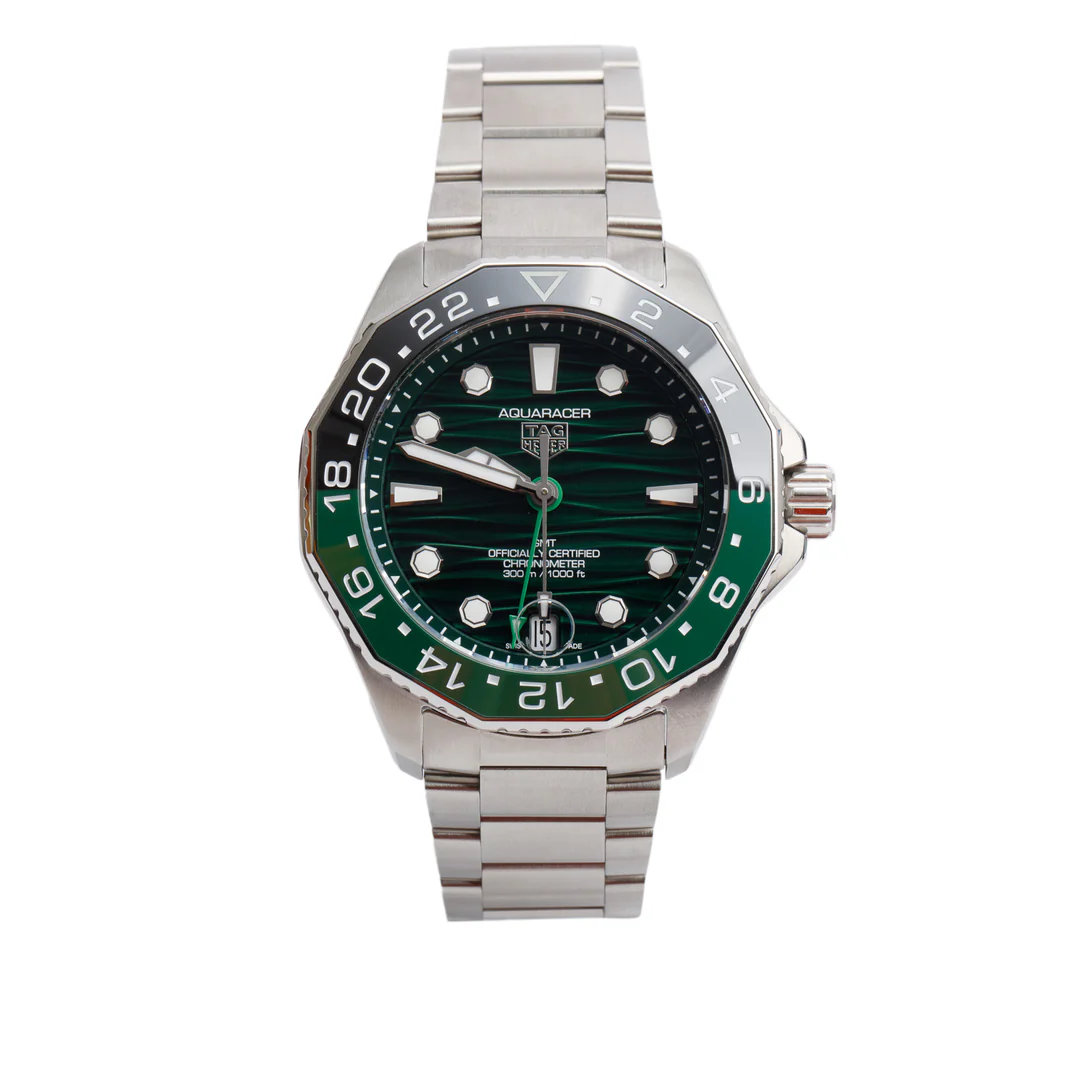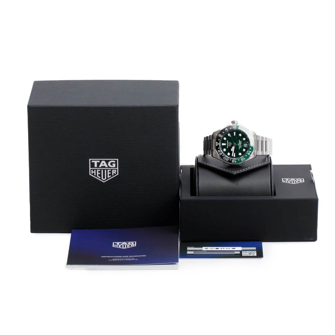 2025 Stainless Steel Aquaracer Professional 300M GMT 42 MM Automatic Watch Green Dial WBP5115 w/ Box, Receipt & Papers