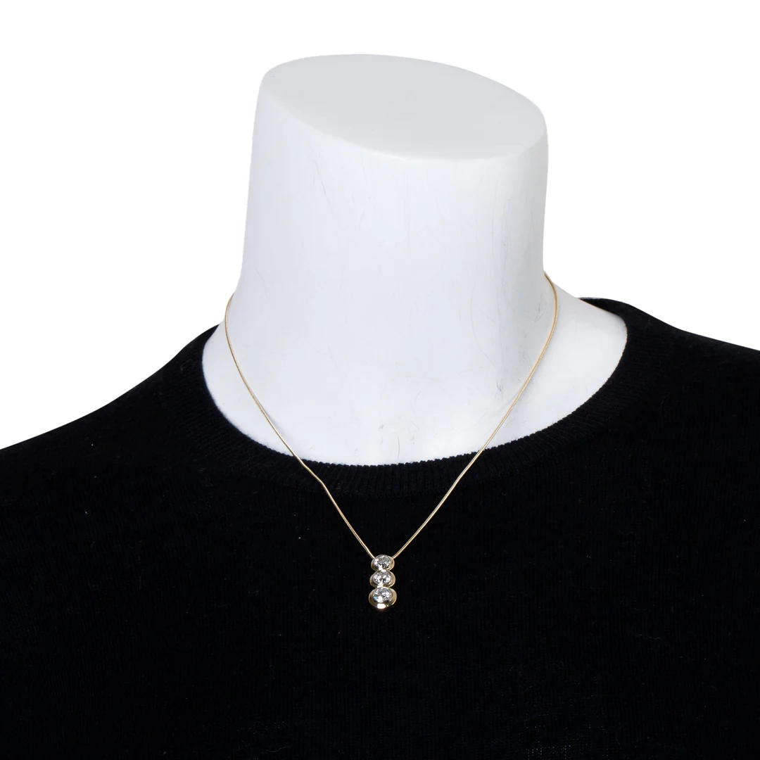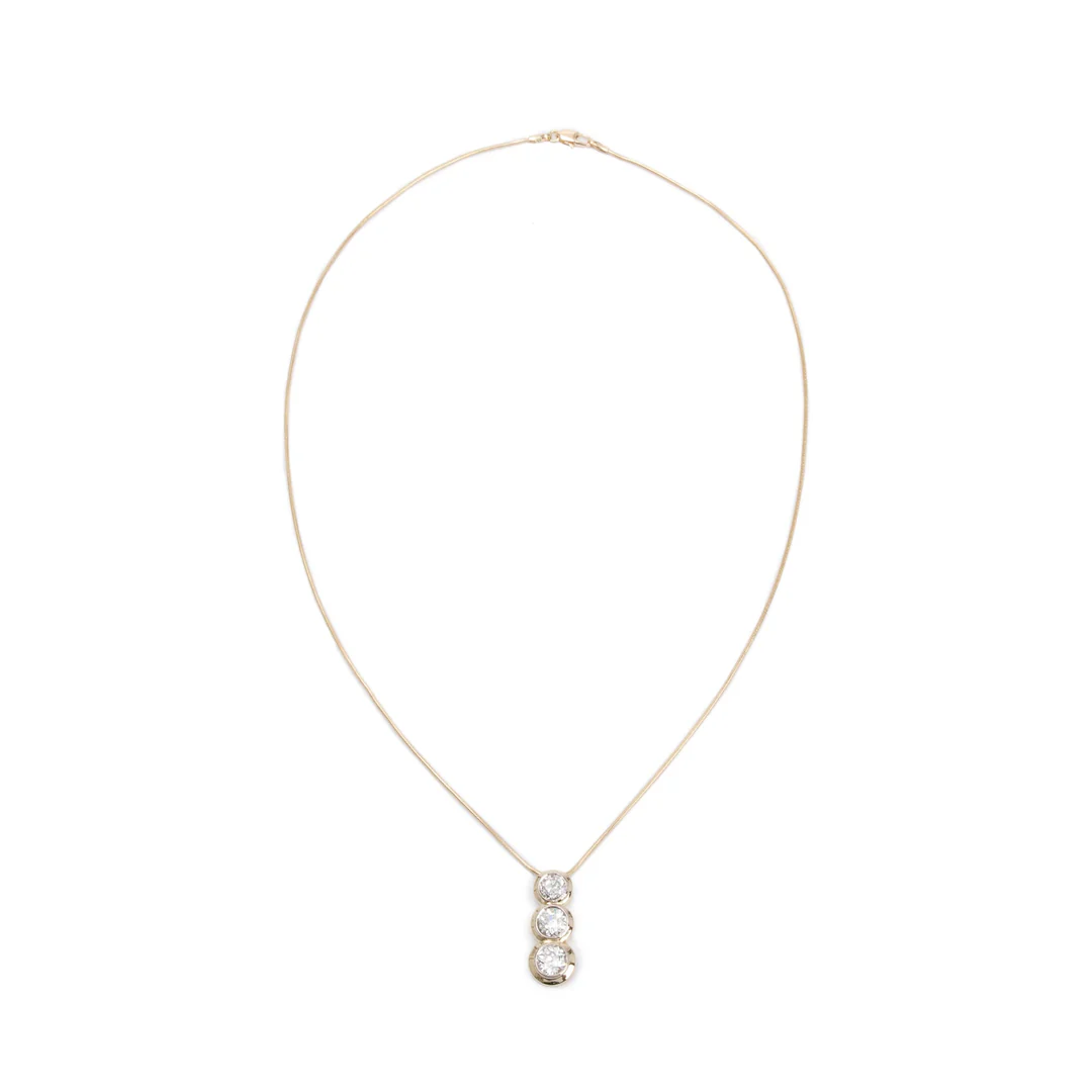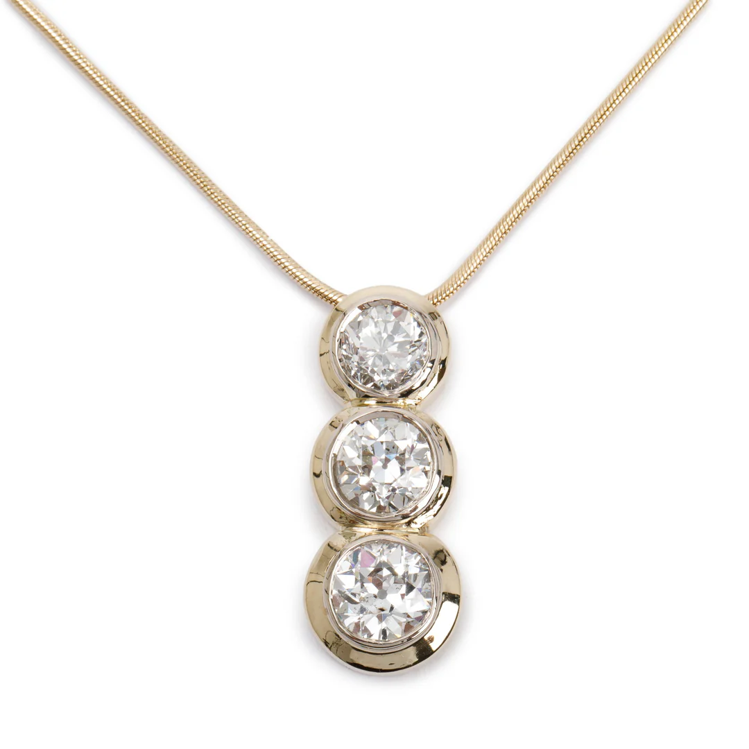 Be the first to review “Antique 14k Yellow Gold Three Stone Diamond Drop Pendant Necklace”