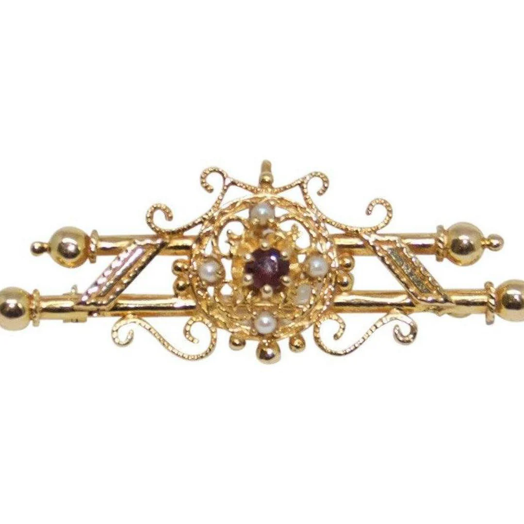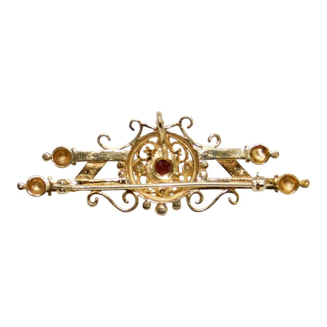 Antique Art Deco Garnet and Pearl Brooch/Pendant
