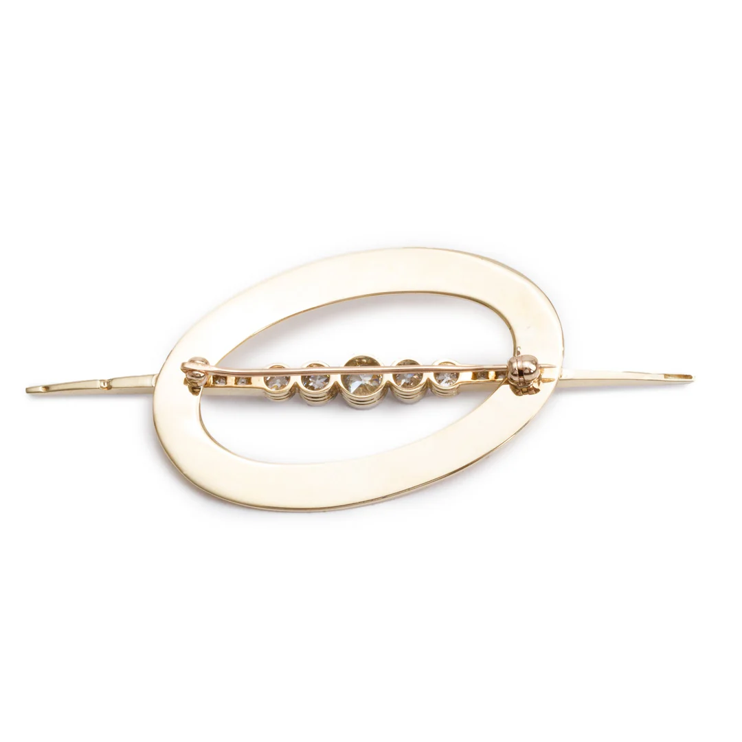 Antique Platinum & 14k Yellow Gold Diamond Oval Brooch