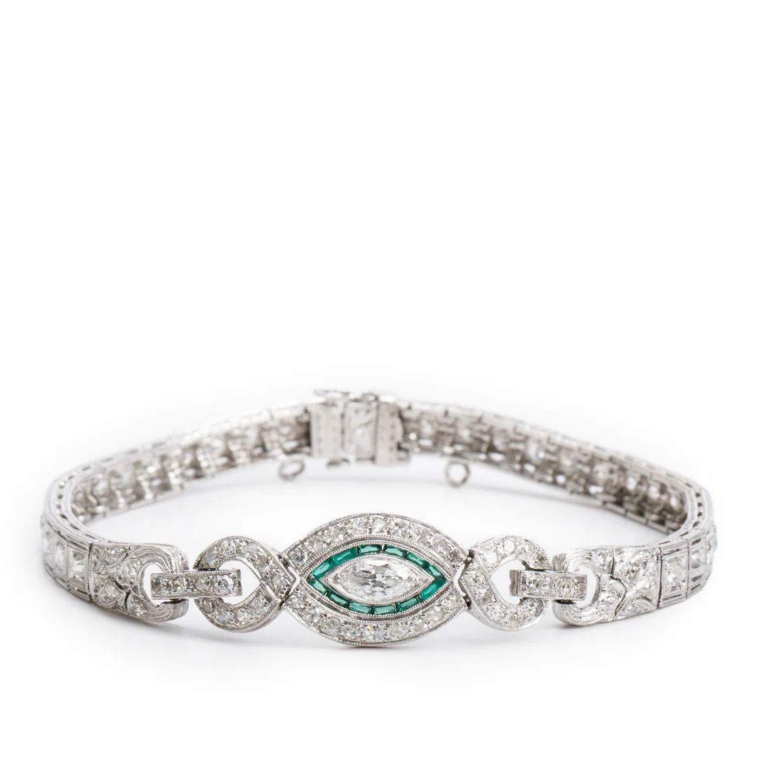 Be the first to review “Antique Platinum Emerald and Diamond Art Deco Bracelet”