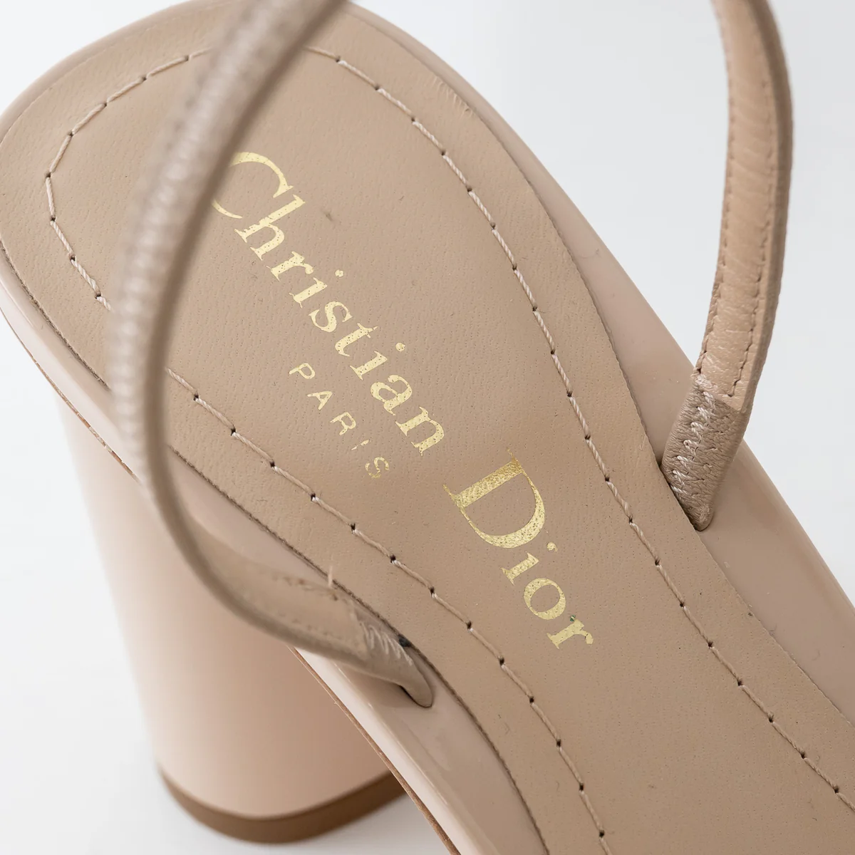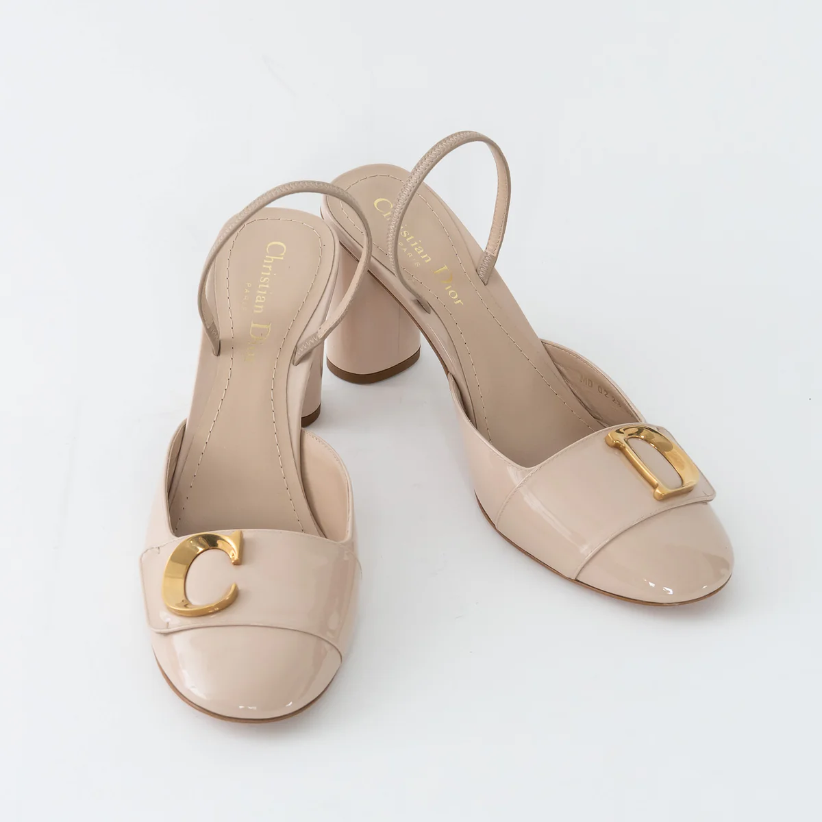 - Features: Closed toe, Almond toe, Gold C and D on vamp, Slingback strap, Leather insole