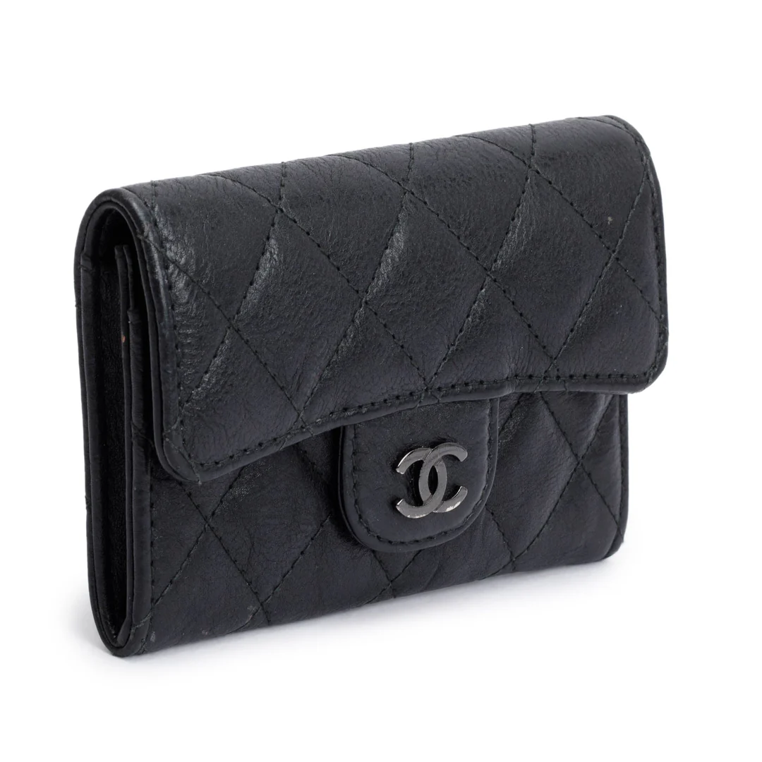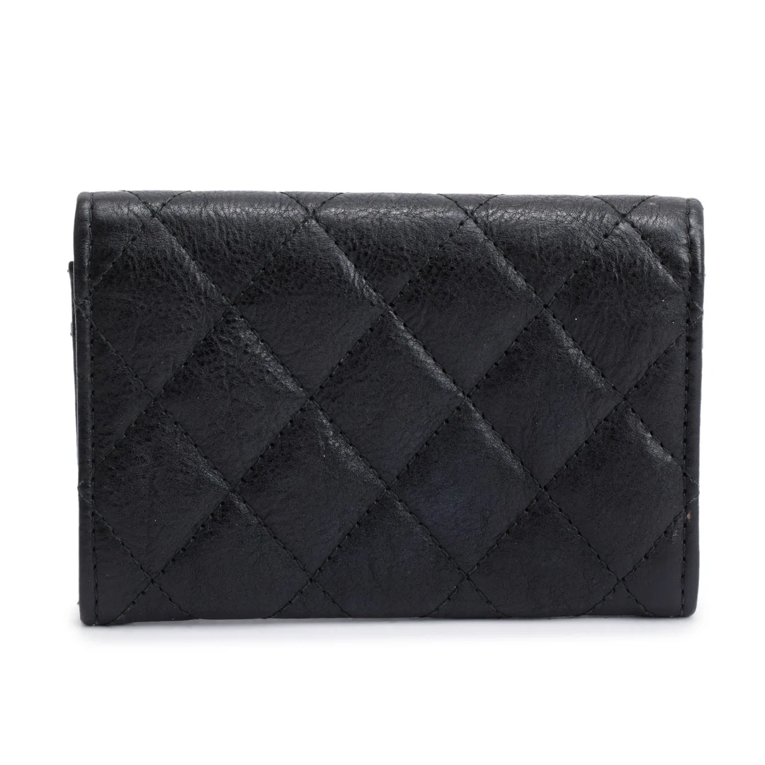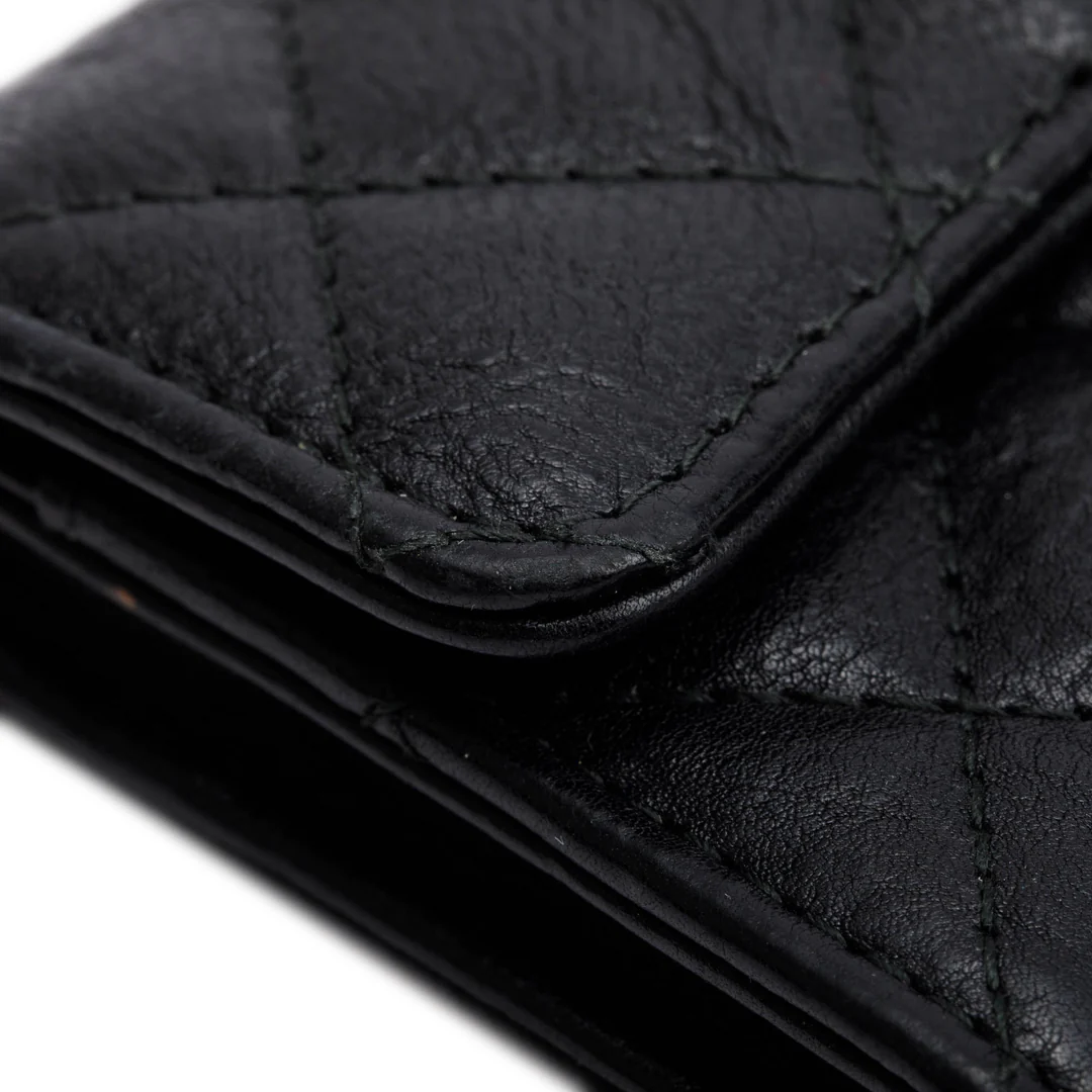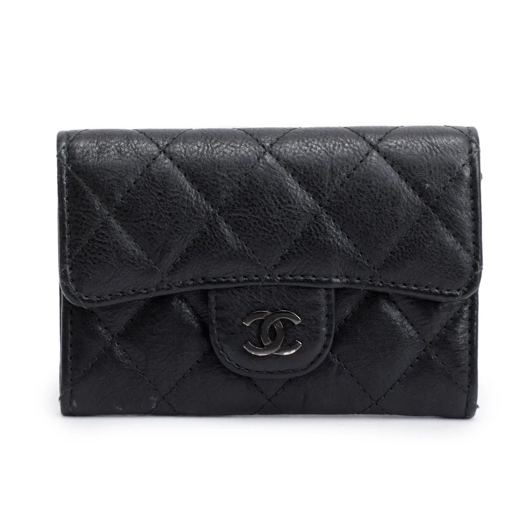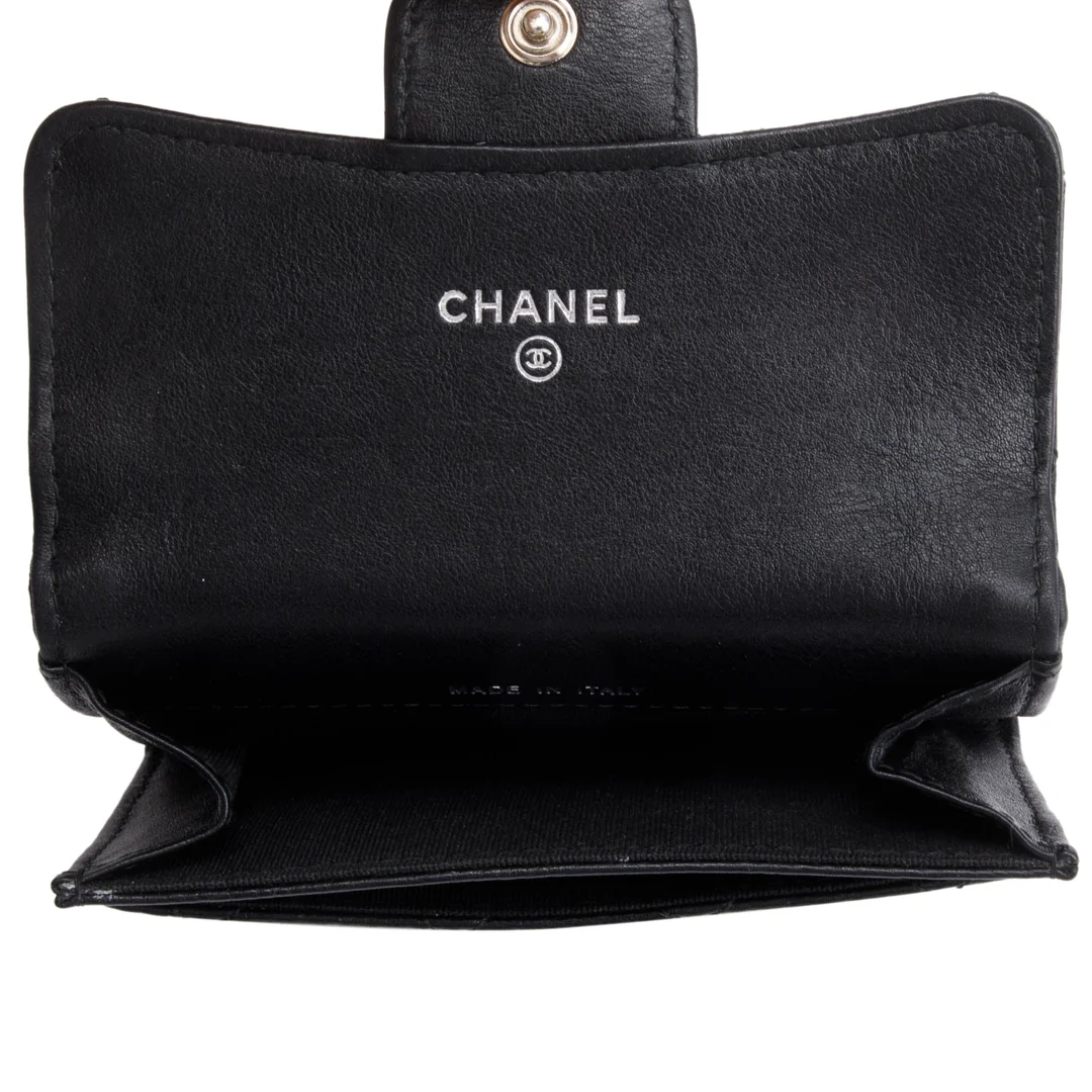 Black Calfskin Leather Classic Flap Card Holder
