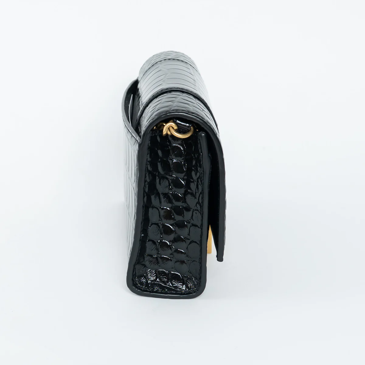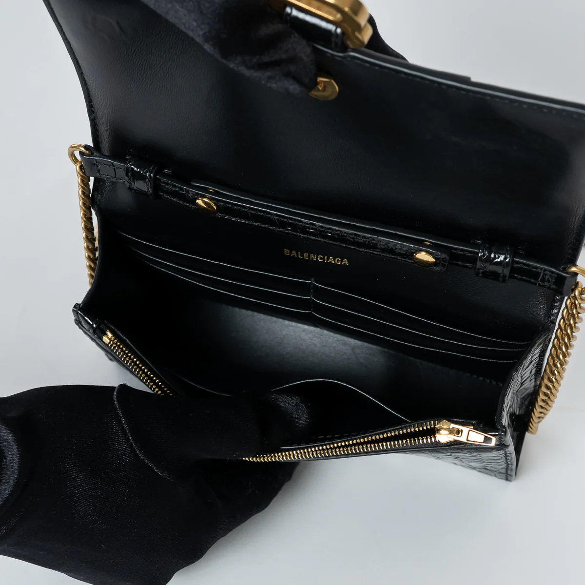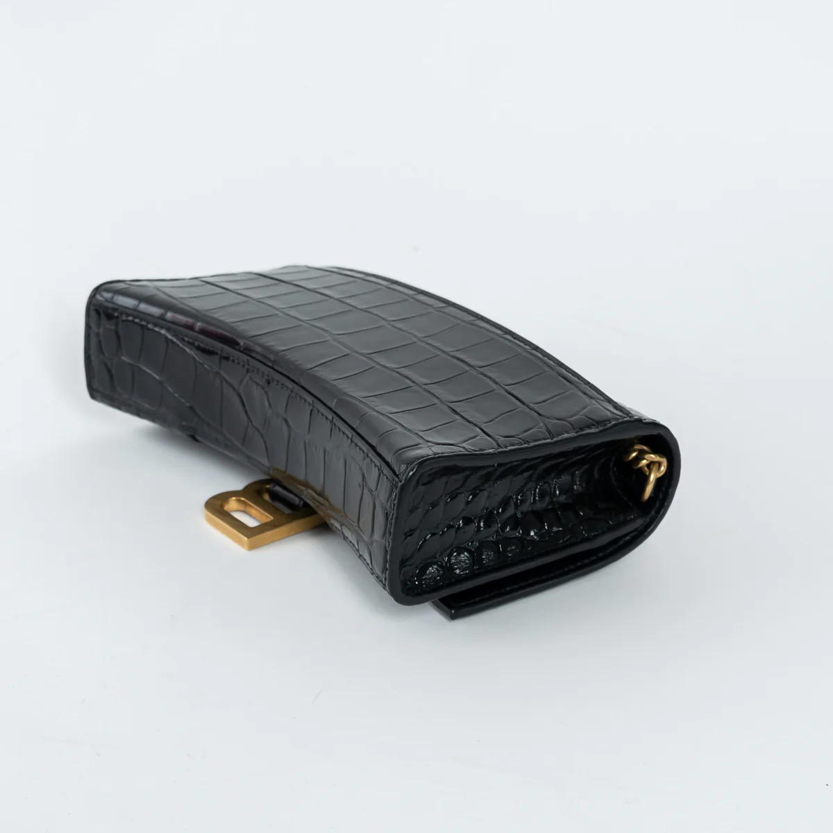 Black Embossed Croc Calfskin Leather Hourglass Wallet on Chain
