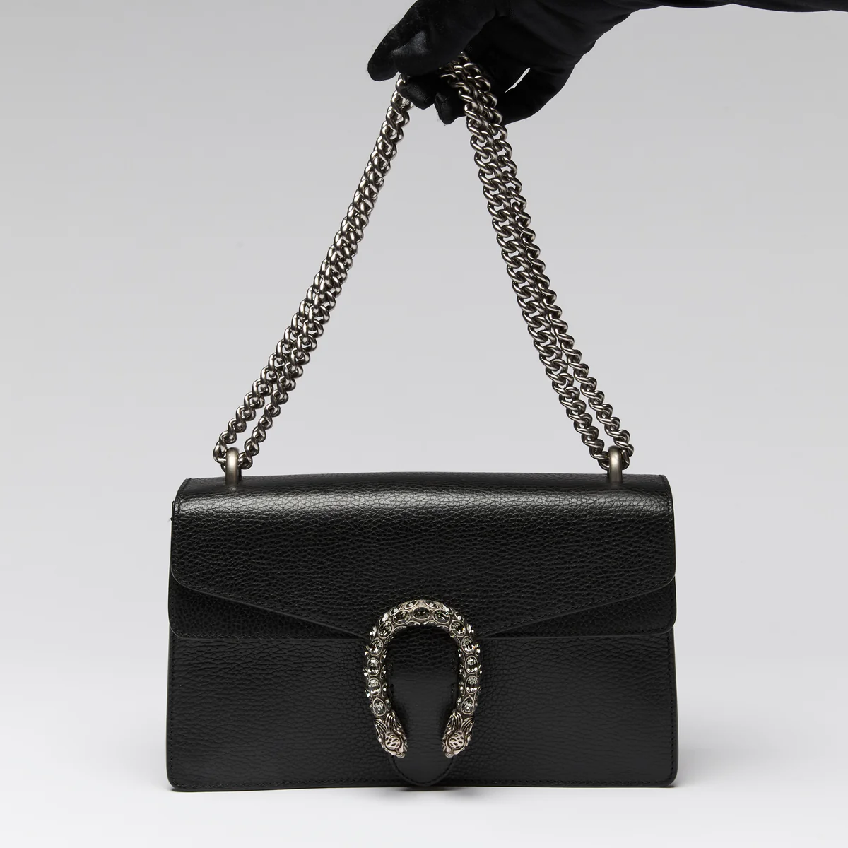Black Grained Leather Medium Dionysus Shoulder Bag