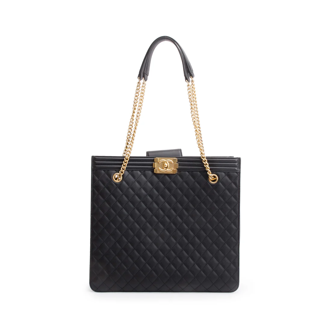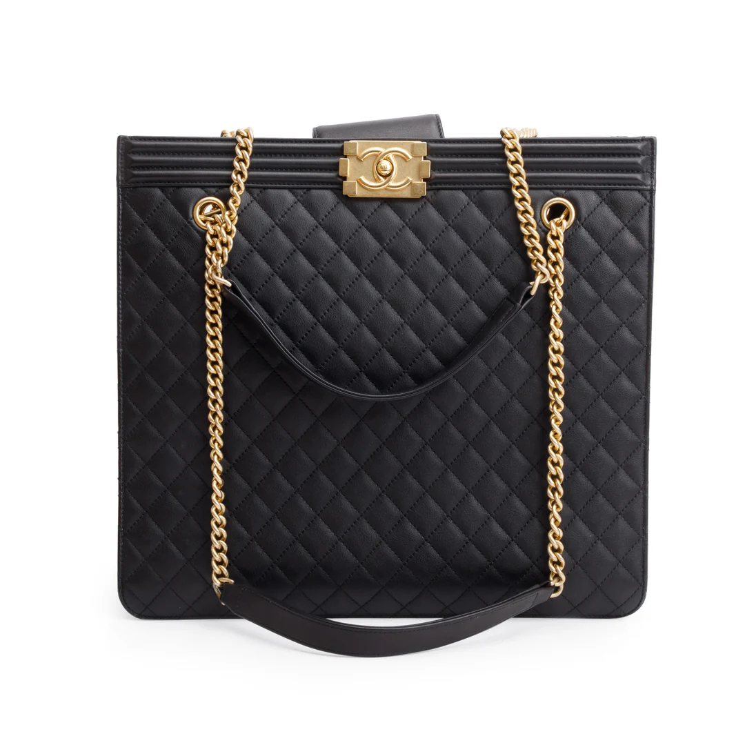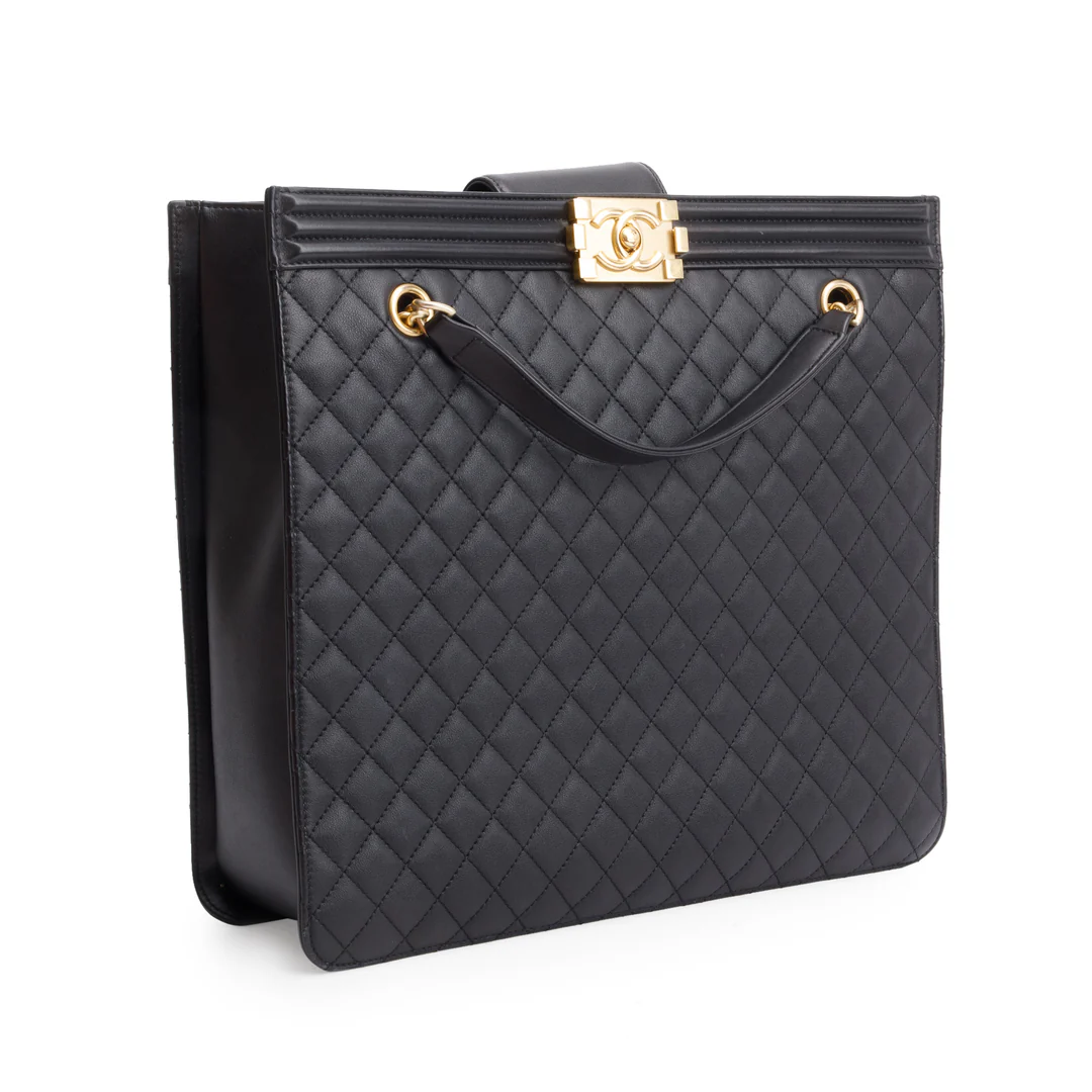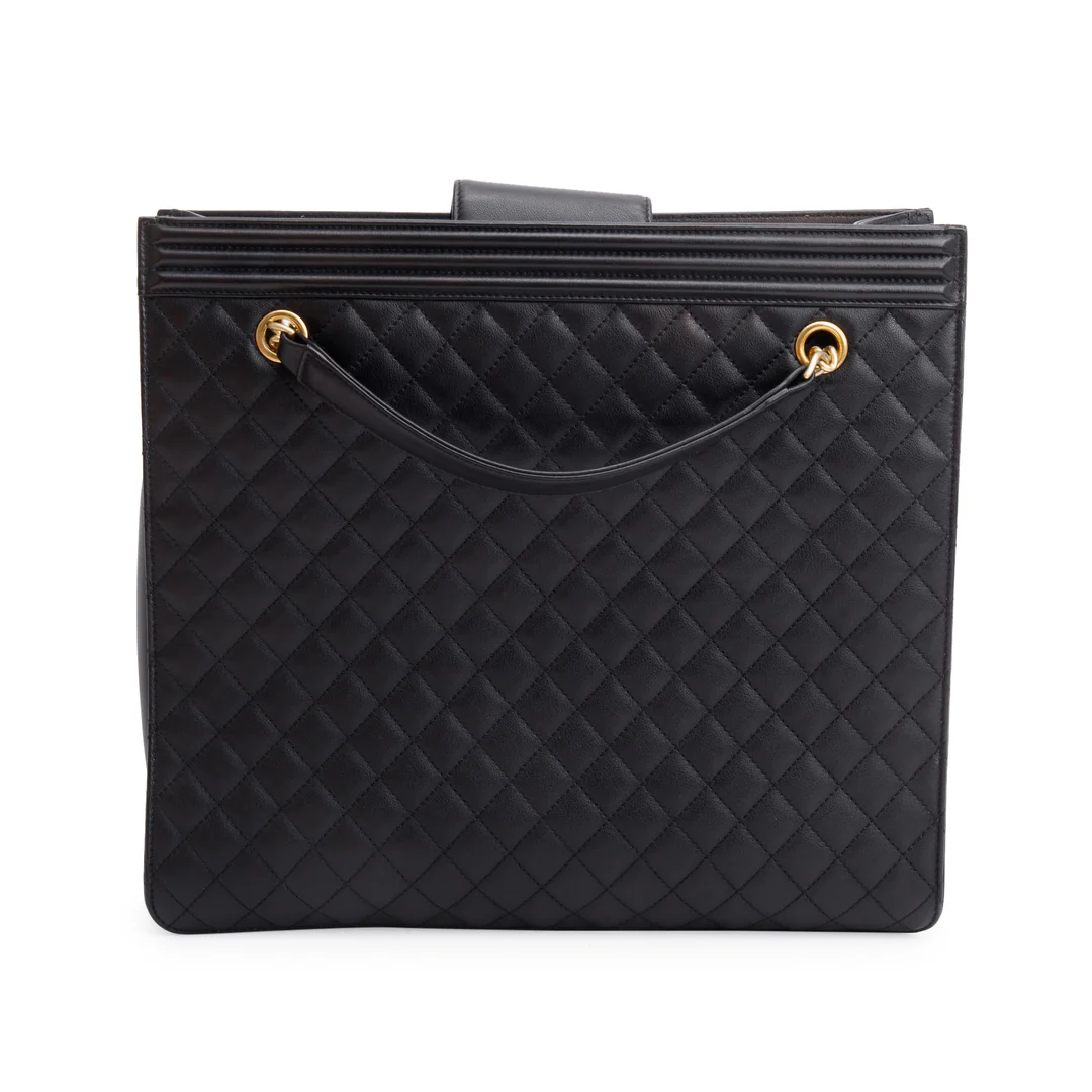 Black Quilted Lambskin Leather Boy Shopping Tote